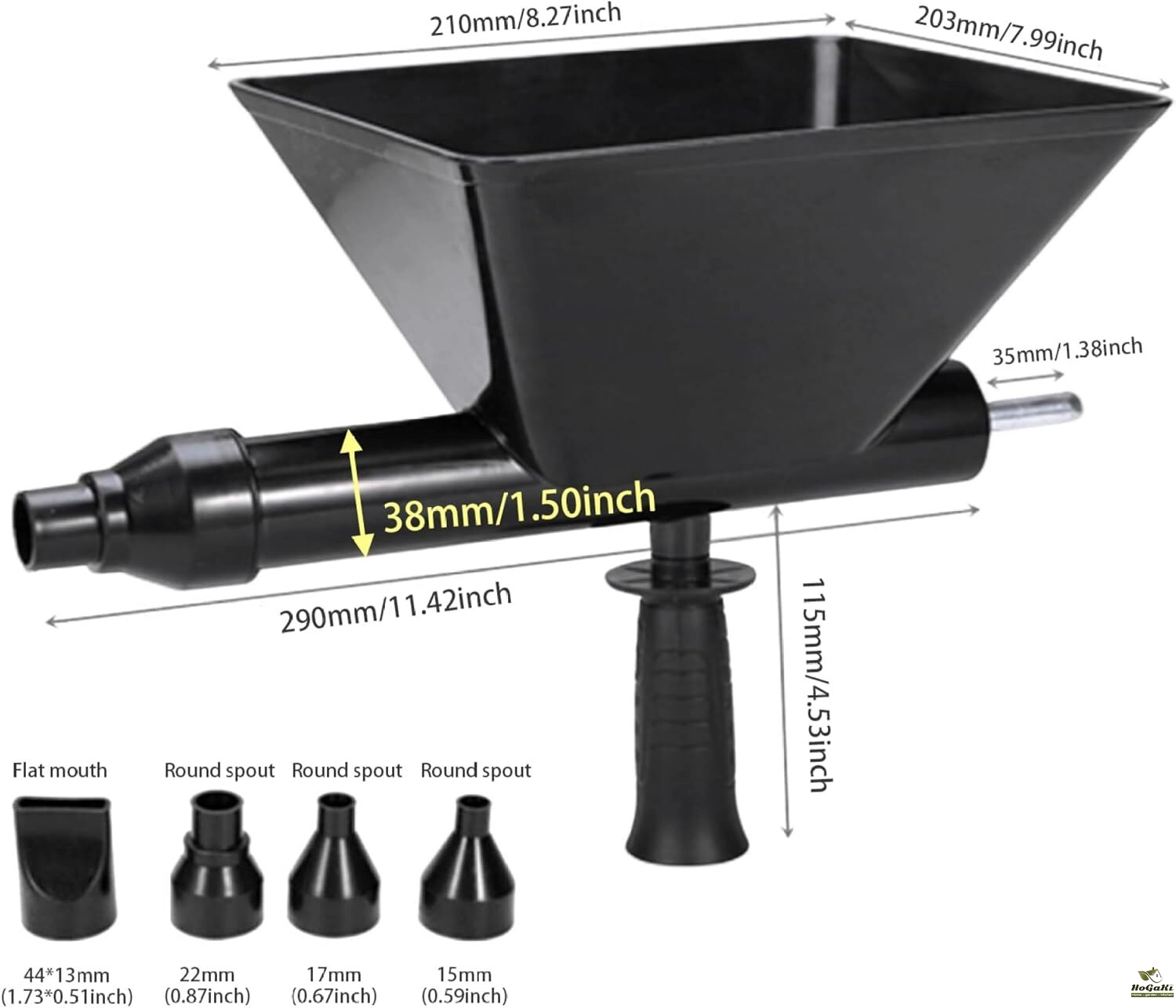 Replacable Nozzle: Mortar caulking machine equipped with replaceable 4PCS nozzles and you can use the nozzle according to different environments to reduce material waste. 1 flat mouth and 3 round mouths in different size.