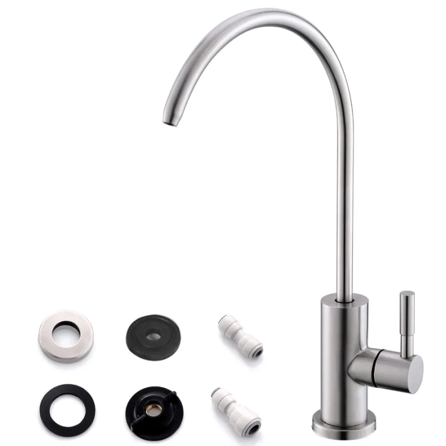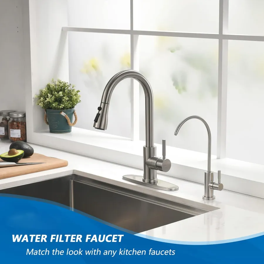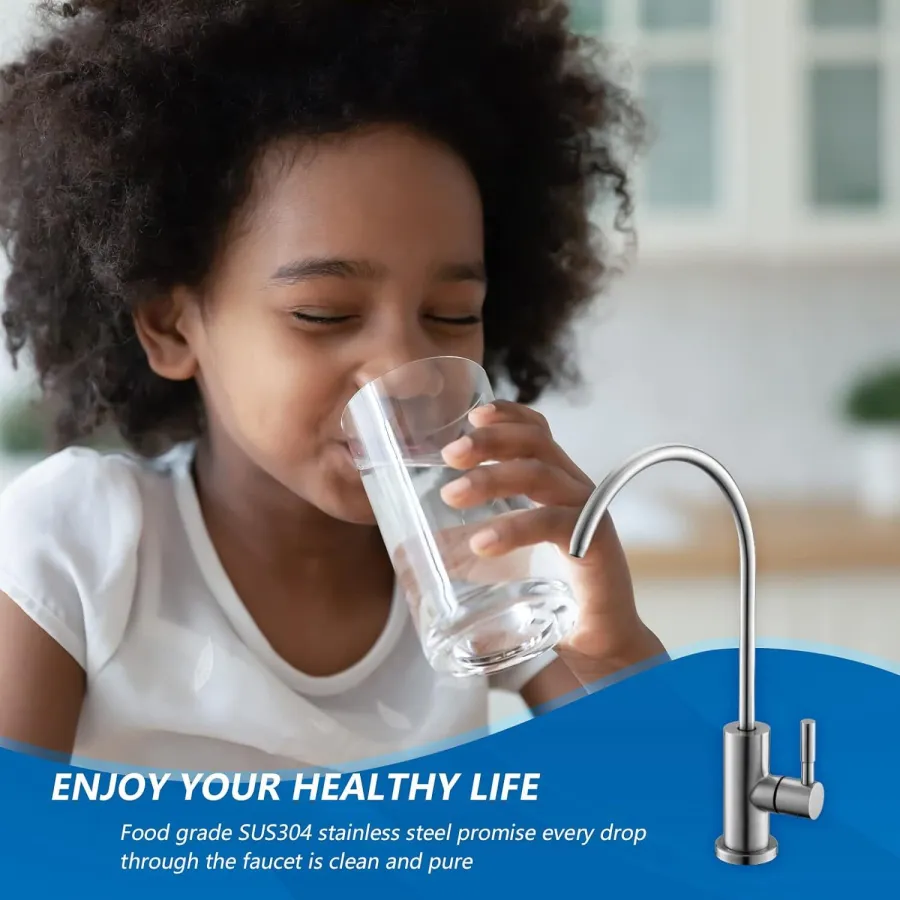 Perfect Match: Our sink drinking water faucet has a brushed nickel finish, no matter the size or shape, this reverse osmosis faucet can be matched with the appearance of various kitchen faucets. It is also suitable for stainless steel sinks or marble countertops.