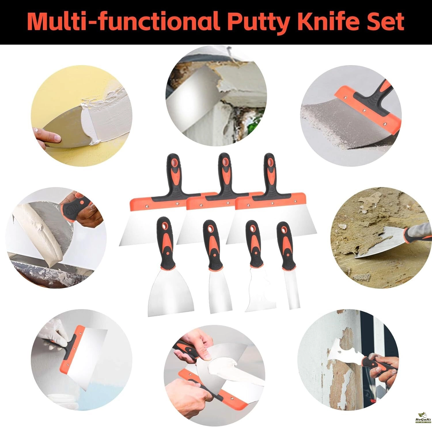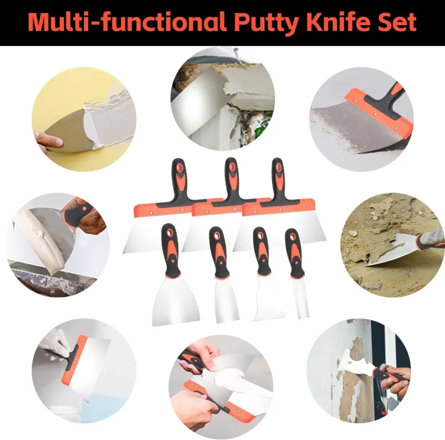 【Easy to Use】: The putty knife set is easy to use and versatile. The tools are designed to be easy to handle and maneuver, allowing you to work efficiently and effectively. Whether you are a professional or a DIY enthusiast, this set is a must-have for your home repair toolkit.
