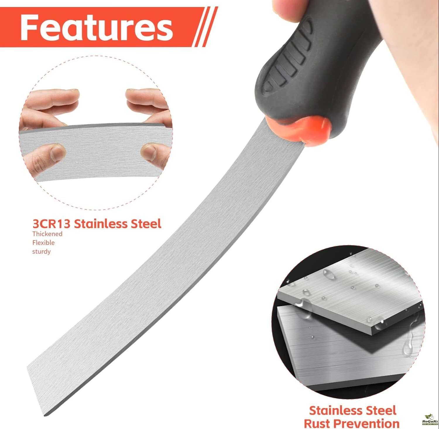 【High-Quality】: Made of 3CR13 stainless steel, high hardness, rust-proof; the surface mirror polishing process can remove the oxidation layer on the surface of the lens, enhance its durability and corrosion resistance, and extend its service life. Comfortable Grip:Made of high-quality PP & TPR materials, with a soft rubber anti-slip handle that is ergonomically designed to reduce hand fatigue when using the tool. The handle top features a hanging hole design, allowing for easy storage on any nail or pegboard, saving space.