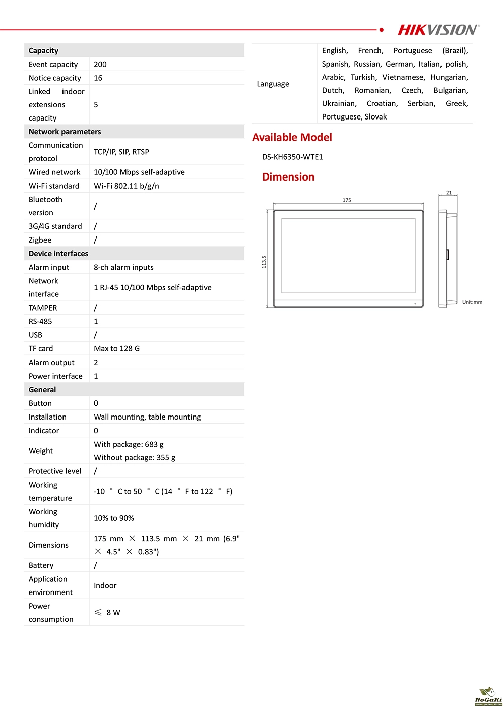DS-KH6350-WTE1 Hikvision IP Vedio Intercom Wireless Network Indoor Station 7-inch WIFI Monitor Screen Unlock Door Via Mobile App