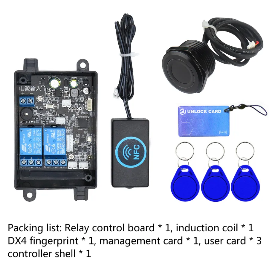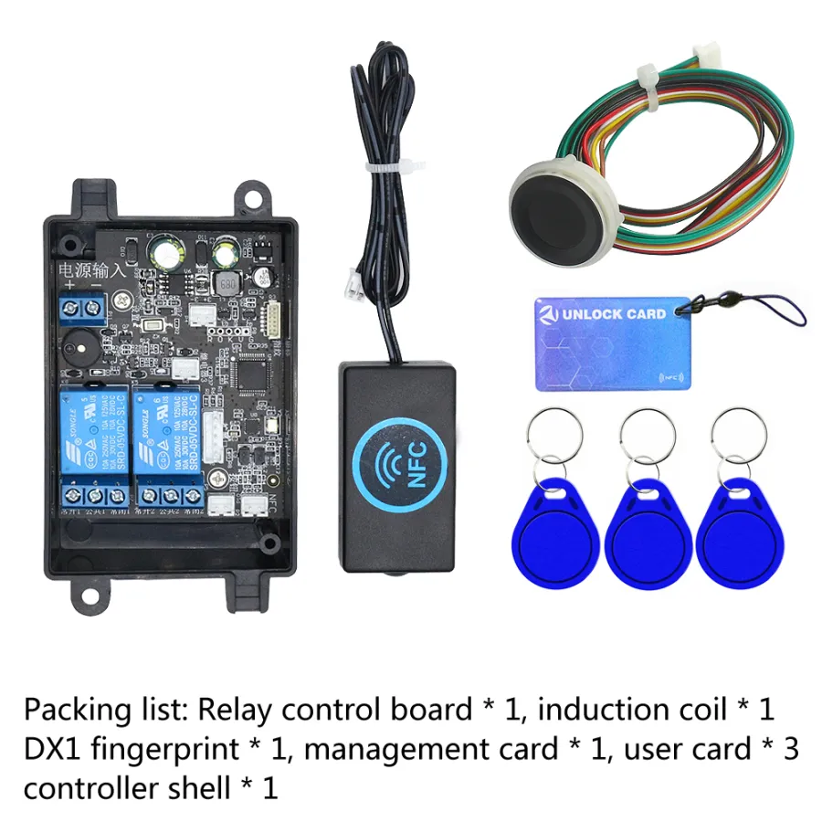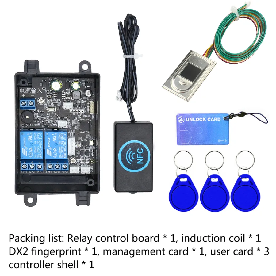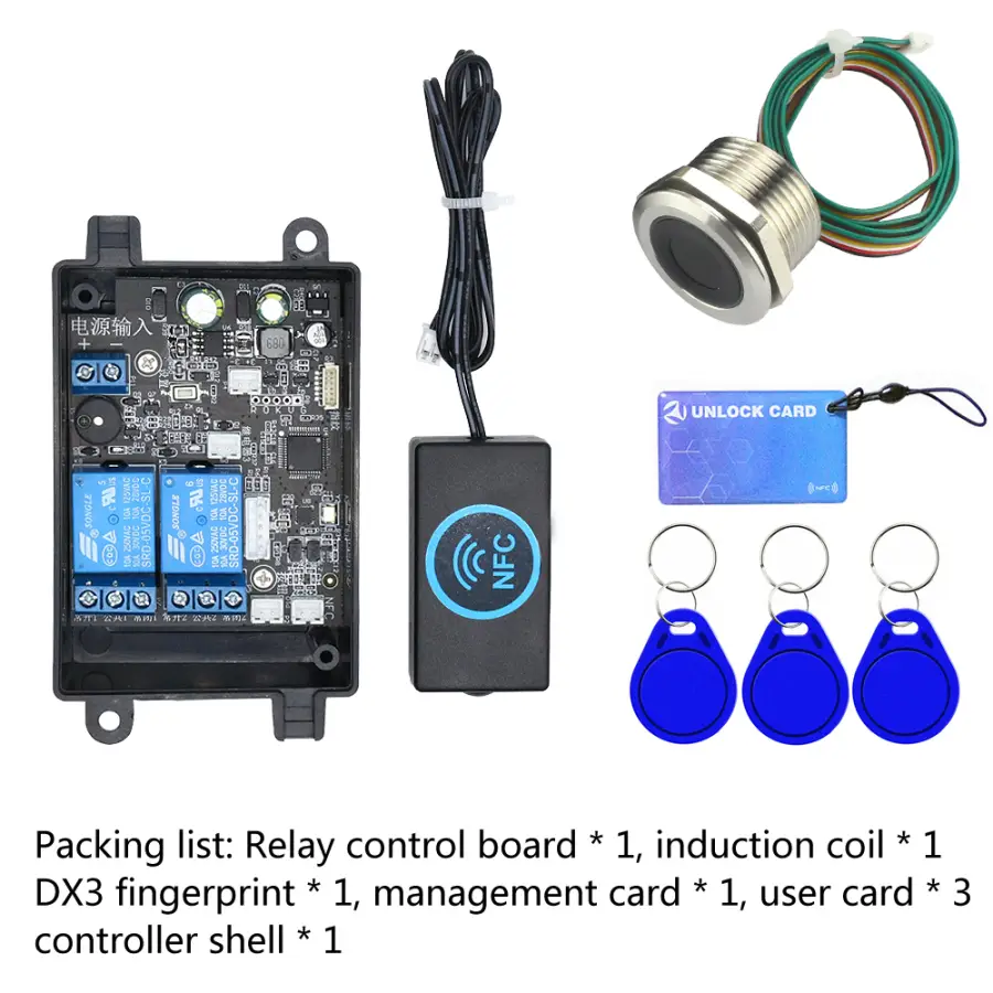 1) manajemen sidik jari atau kartu manajemen dibuka dengan sukses, keluaran Antarmuka 3V, tunggu 1S, relai 1 terhubung 0.5S terputus.