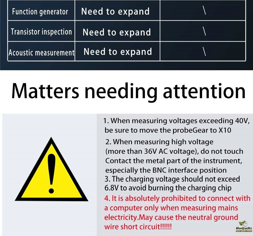 2. When measuring high voltage (more than 36V AC voltage), do not touch the metal part of the instrument, especially the BNC interface.