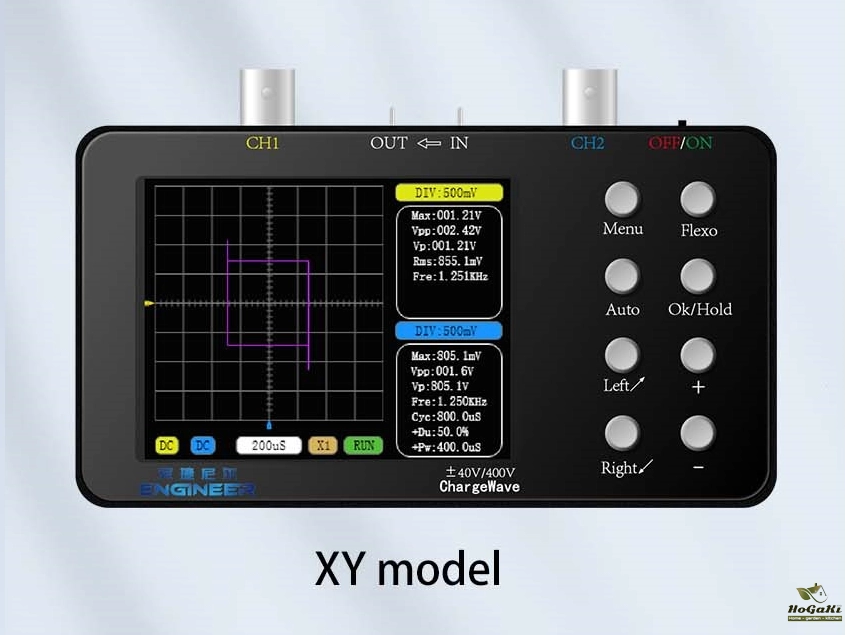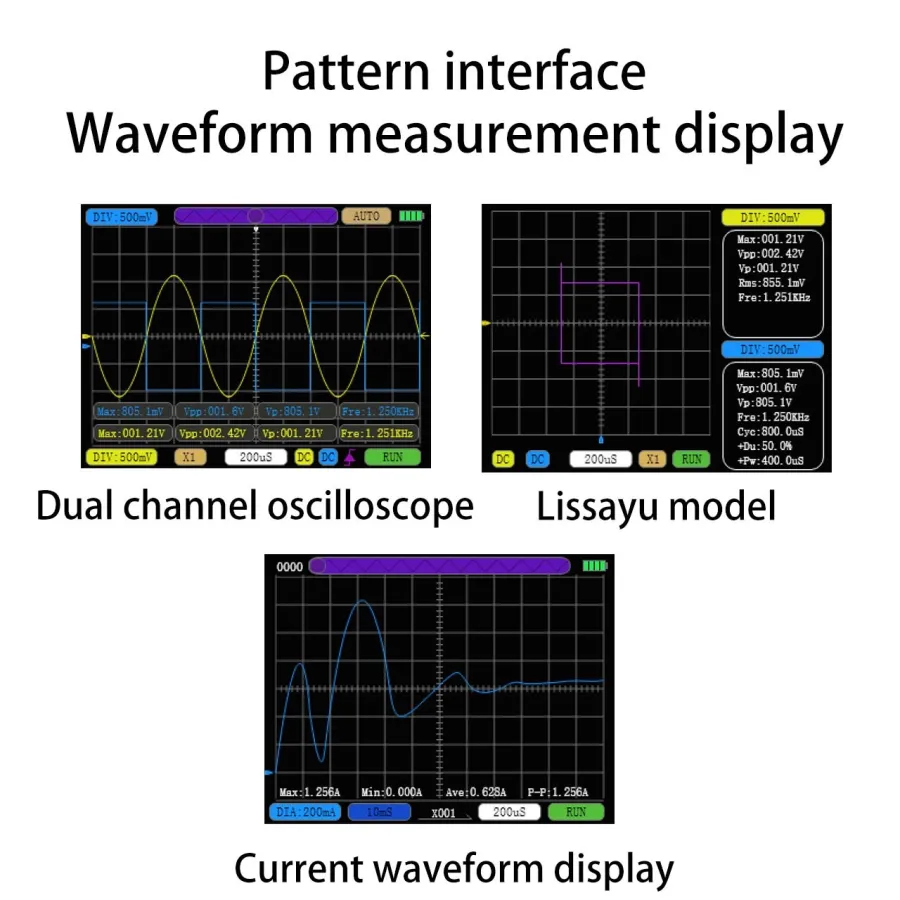 7. Dual-channel oscilloscope mode: Lissajous mode/current waveform display