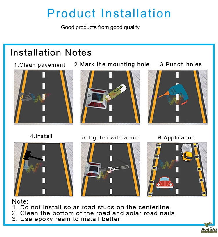 These solar LED road studs are naturally charged by the sun. As soon as it starts getting dark the LED lights in the stud come on automatically each night for up to 10 hours. They have been specifically designed with road safety in mind and can help to prevent serious accidents and emit rather than reflect light. Solar LED Road Studs are also known as solar raised pavement markers, solar reflective lane markers and solar warning devices.