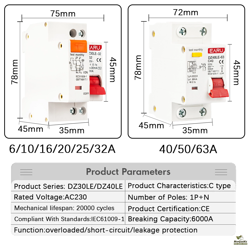 1)Provides protection against earth fault/leakage current, short-circuit,overload,and function of isolation.