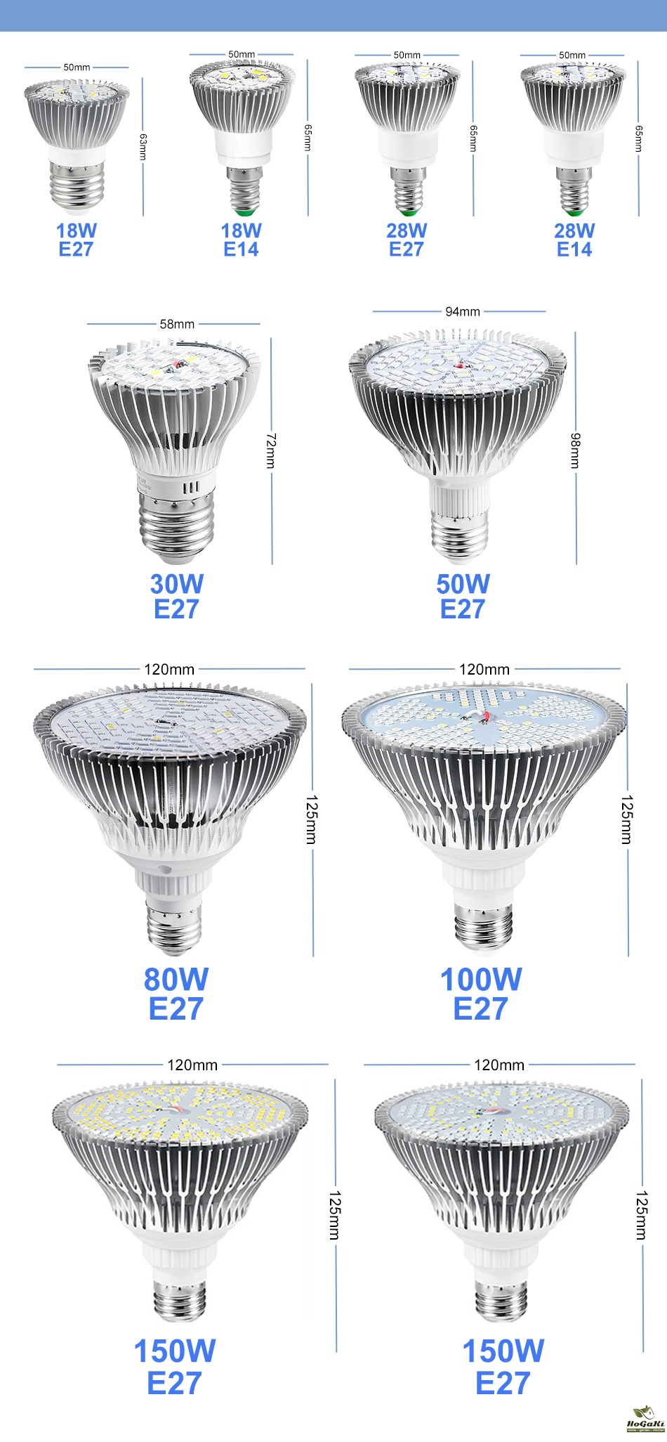 Power: 18W/28W/30W/50W/80W/100W/150W(Full spectrum)/150W(Sunlight)