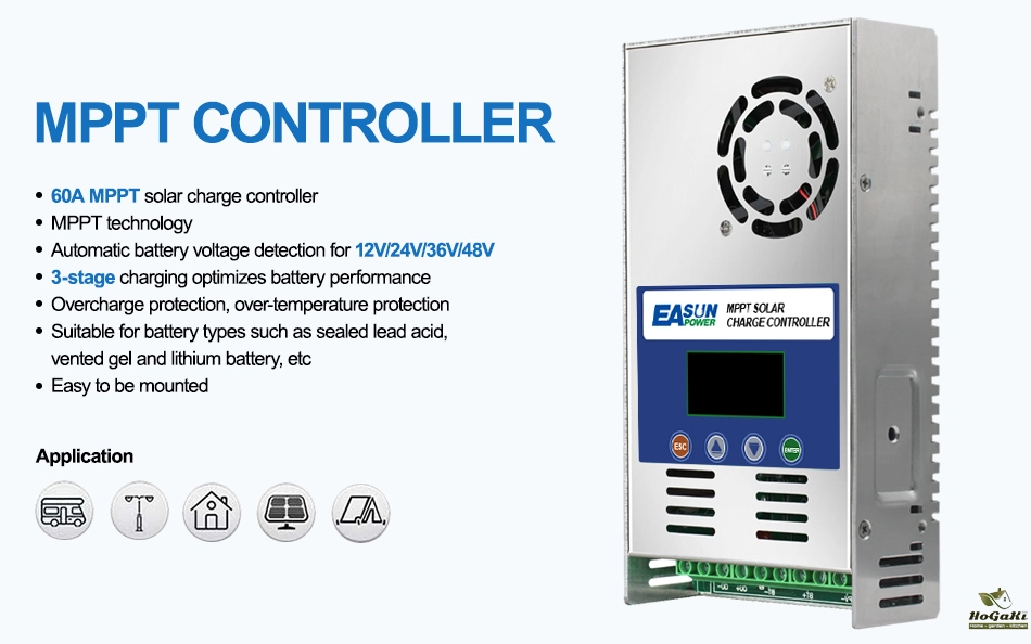 EASUN POWER 60A MPPT Solar Charge and Discharge Controller 12V 24V 36V 48VAuto for Max PV 190VDC Lead Acid Lithium Battery