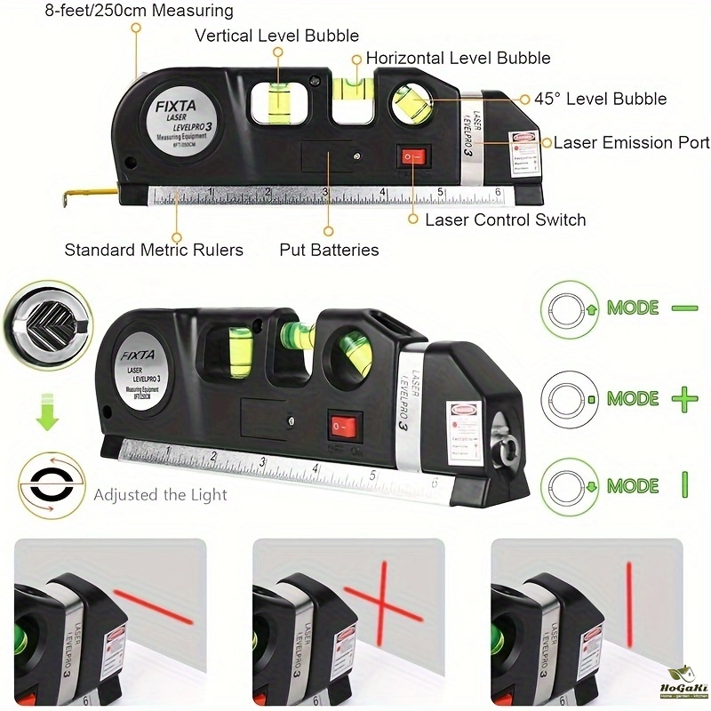 • Accurate Measurement :With the included 8FT 2.5M standard measure tape and metric rulers, this laser leveler provides accurate measurements every time.