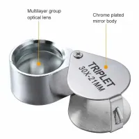 10-30X Pocket Loupe Magnifier Jewelry Magnifying Glass Foldable Diamond Lupa Triplet Jewelers Eye Glass Tool Reading Magnifier