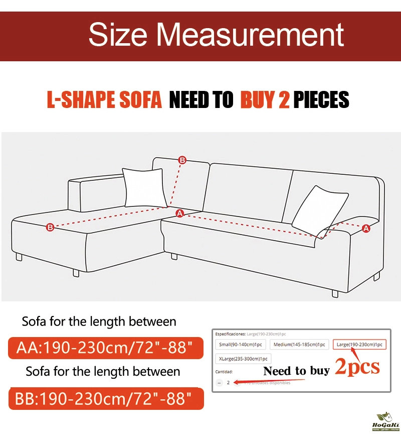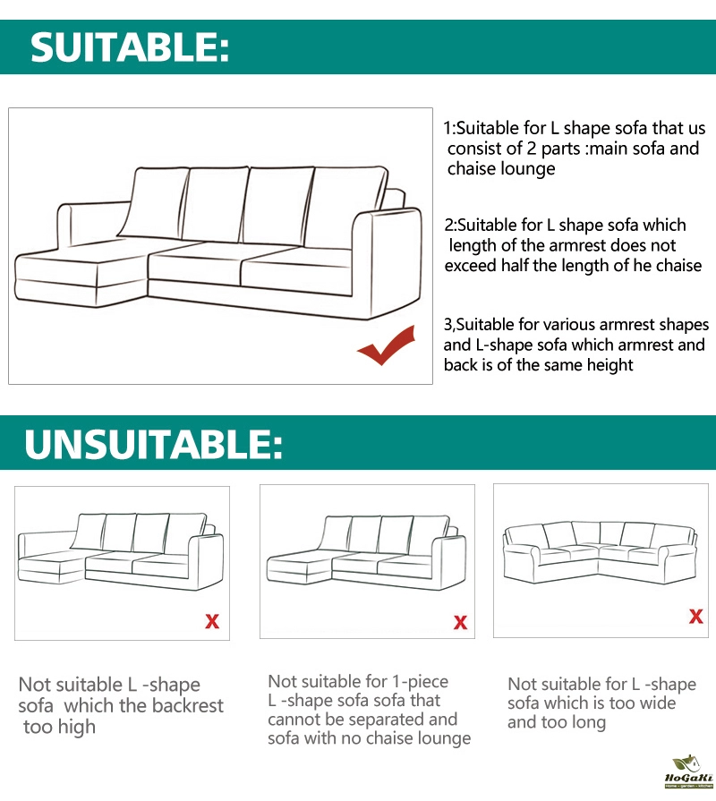 Armless sofa,Armrest sofa, L-shaped sofa, Sectional Sofa (Please measure your sofa include armrest,then choose the size,if you don't measure it,the sofa cover will be smaller than your sofa.)