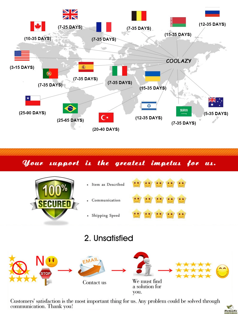 A: When you making order, your passport information will be required by the local customs in Russia. Please be assured that your information will never be told to the third party, and it's safe for you to provide information on Hogaki.