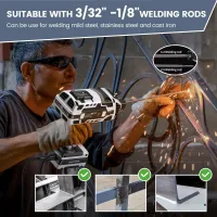 【Smart for all kinds of welding rods】Powerful air intake and heat dissipation smart system, good heat dissipation system can keep the welders long life. The welding rod can be selected from 3/32 inch - 1/8 inch (2.5-3.2 mm), and can be swapped out at will. The various electrode sizes are ideal for DIY welders and home repair chores.