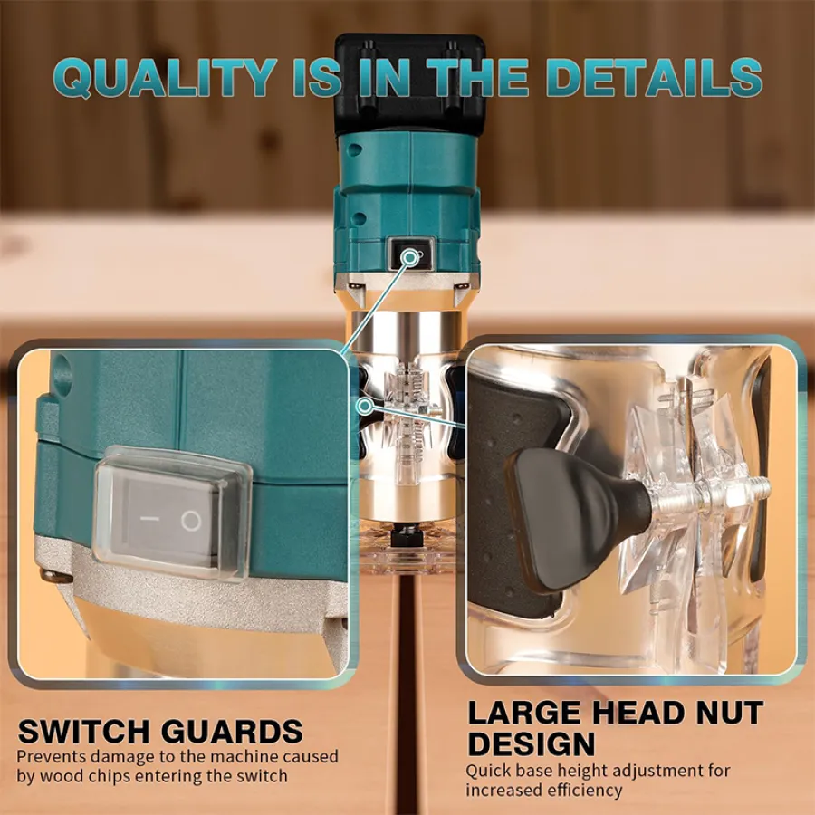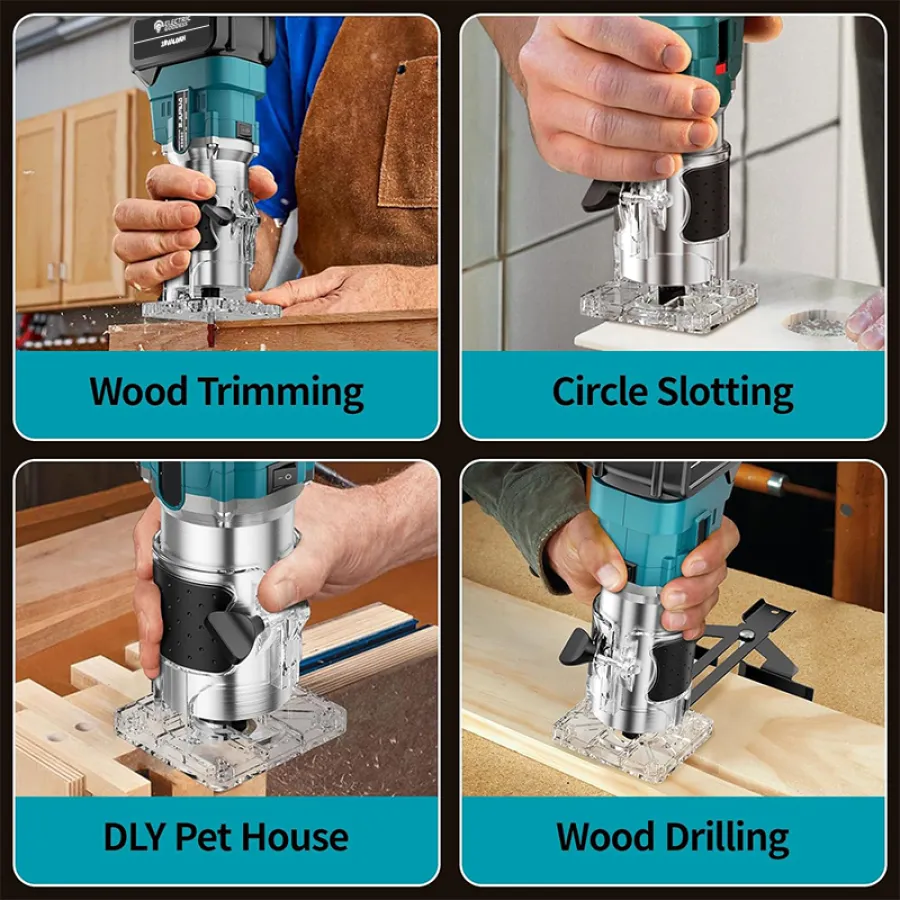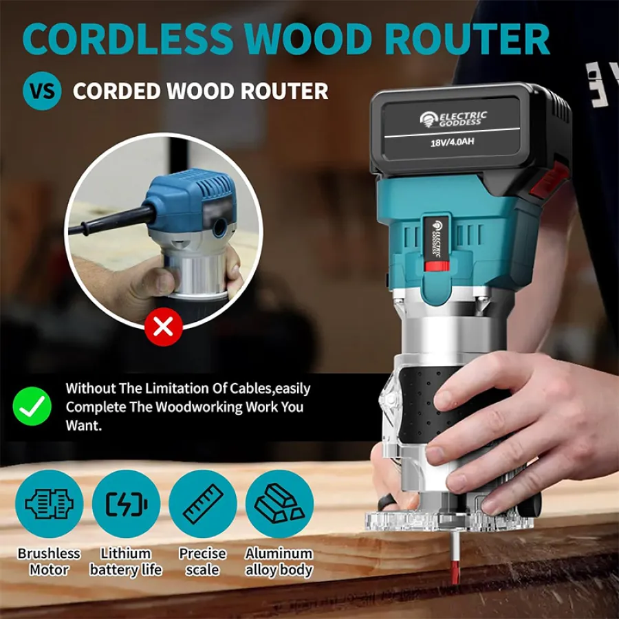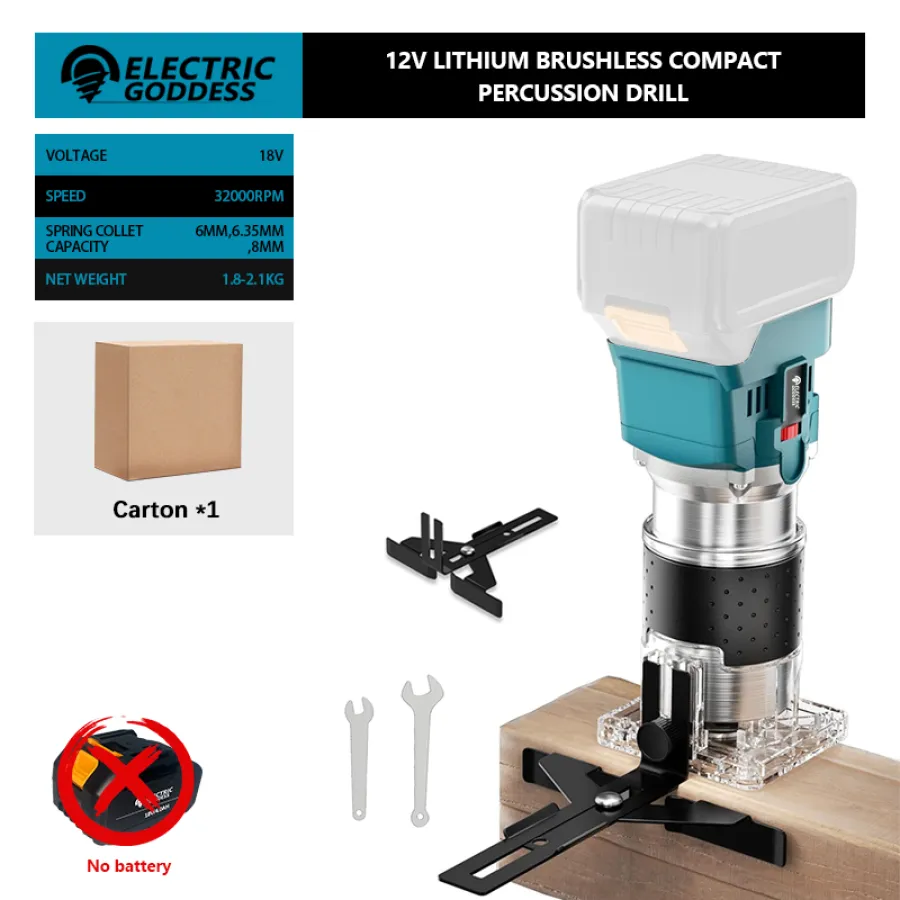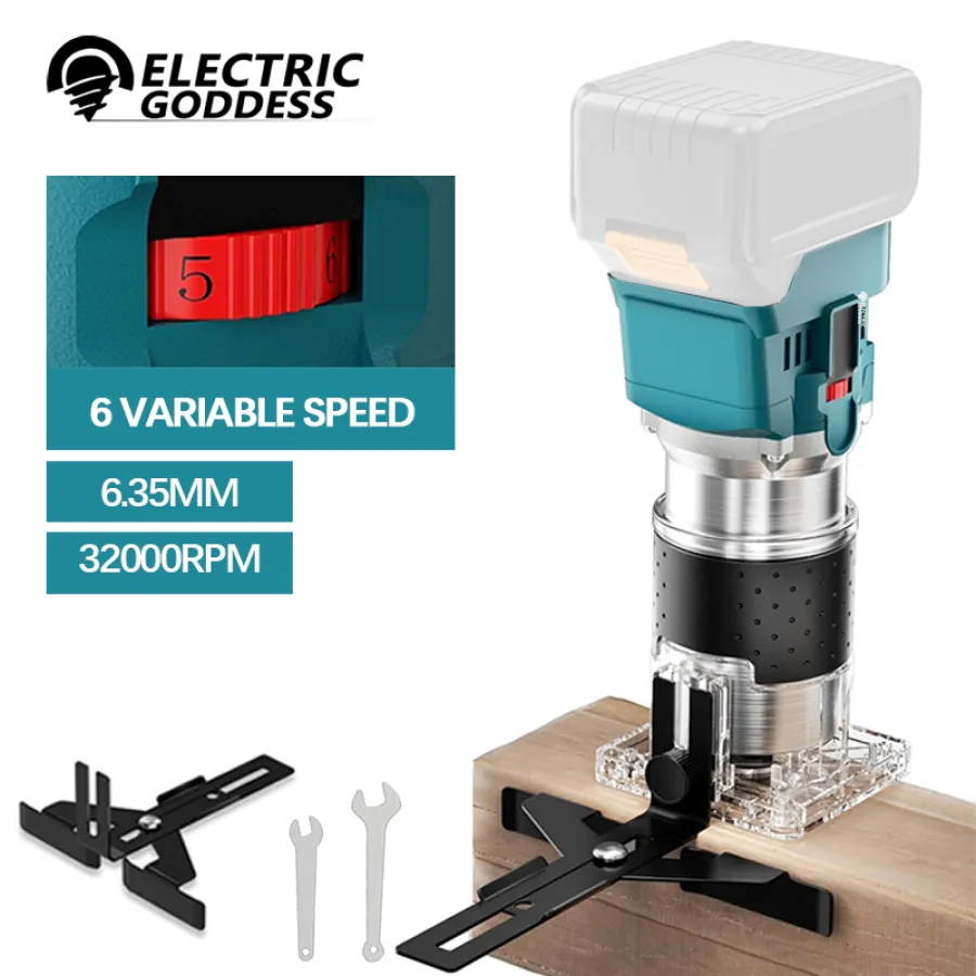 Woodworking Electric Trimmer Brushless Trimming Machine Wood Router Milling Engraving Slotting Machine For Makita18V Battery pin