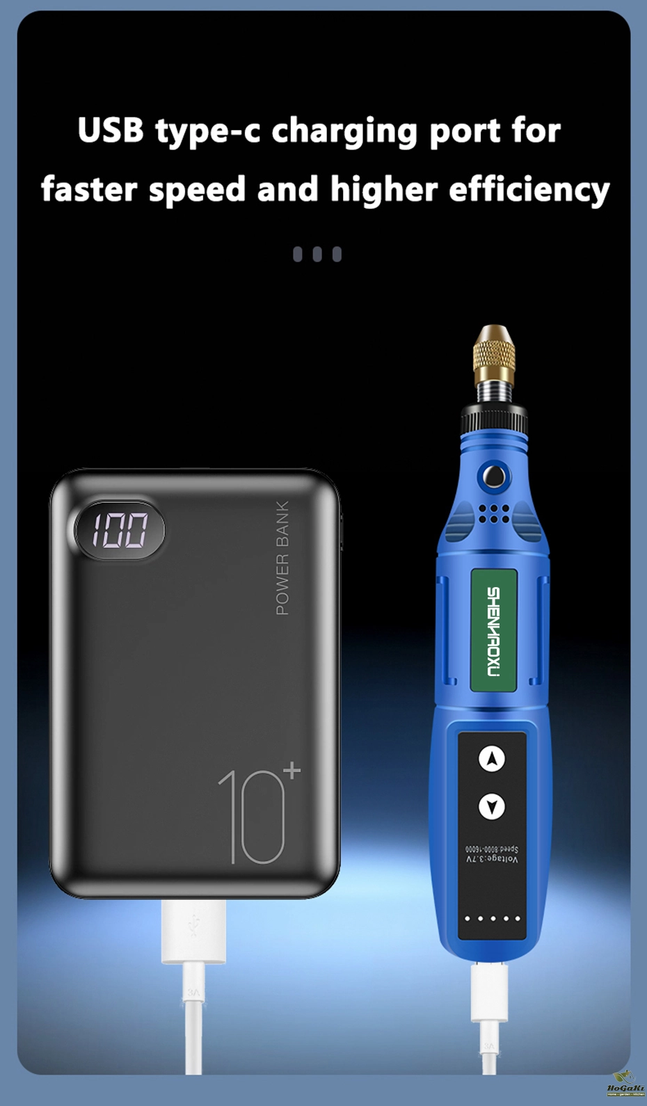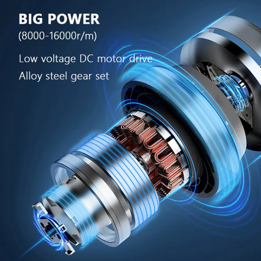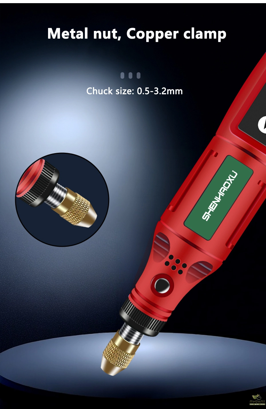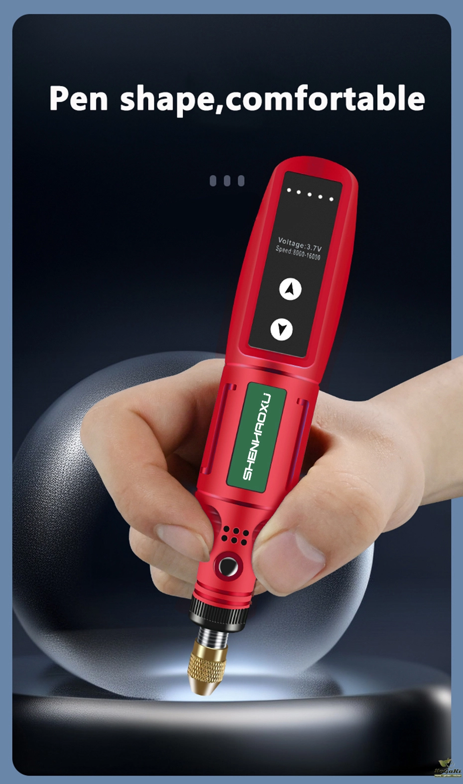 2.Regulating Speed-This electric carving tool has 3/5 speed adjustment,speed adjustment range:8000/14000/16000r/min.Battery level indicator, so you can know the power level more clearly so that you can charge it in time.