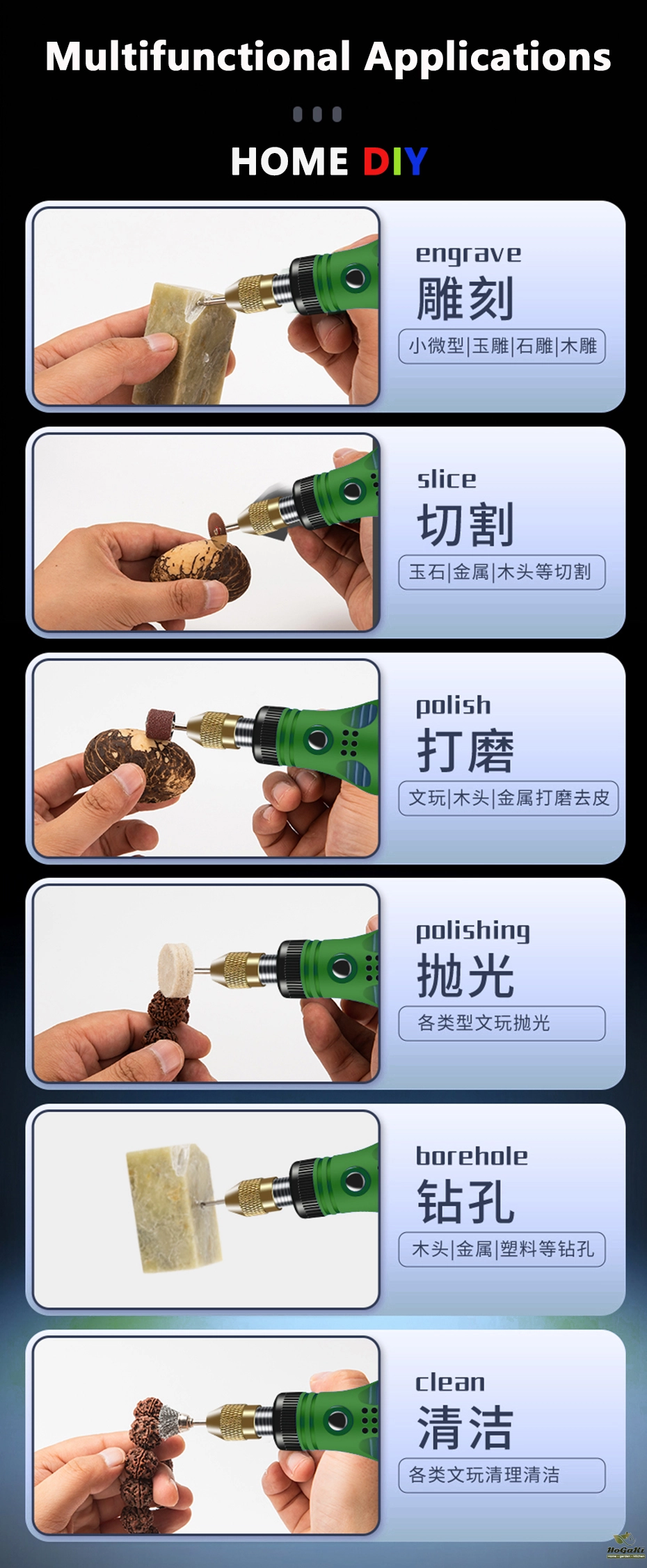 6.Suitable for jade agate, nuclear carving, wood carving, grinding aluminum plate, thin copper board, plastic board, chipboard, printed circuit board, epoxy board.