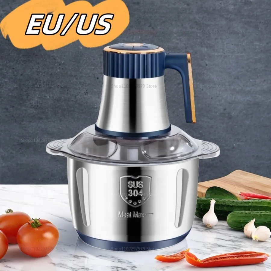 1500W 6.5L Stainless Steel Kitchen Meat Grinder 3 Gears Powerful Motor 4-Layer Blade Vegetable Crusher Onion Garlic Grinder