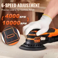 SucceBuy Random Orbital Sander 350W Brushless Orbital Sander 10000PRM 6 Variable Speed Sanding Machine for Woodworking Detailing