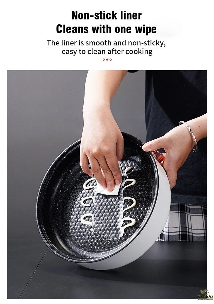 One seamless pot body food can contact the material anti-paste, anti-stick, odorless light oil smoke easy to clean and save worry and effort