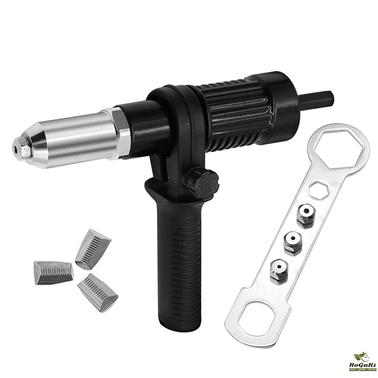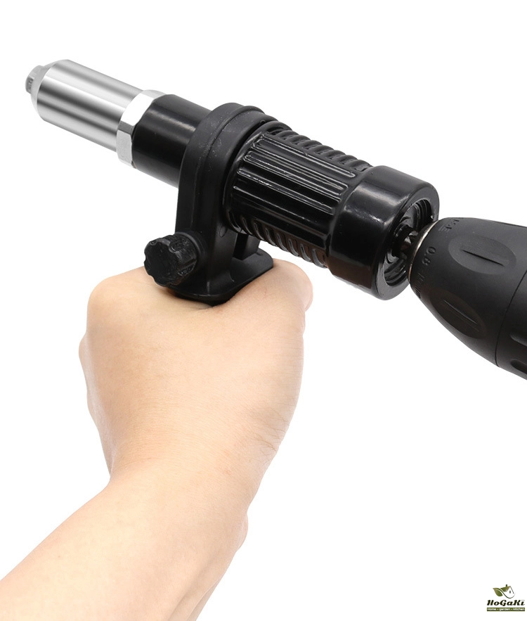 5. Turn on the forward rotation function of the electric drill, align it with the hole, and drive in the rivet