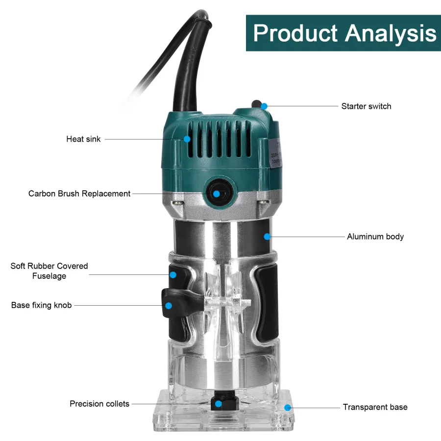 Woodworking Electric Trimmer Multifunctional Trimming Machine Wood Router Milling Engraving Slotting Machine Carving Router Tool