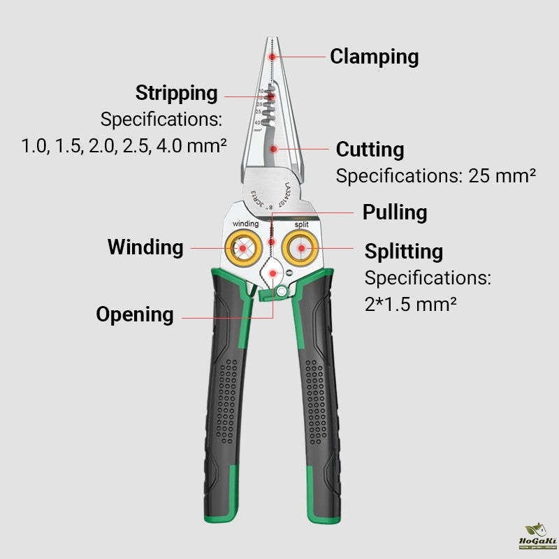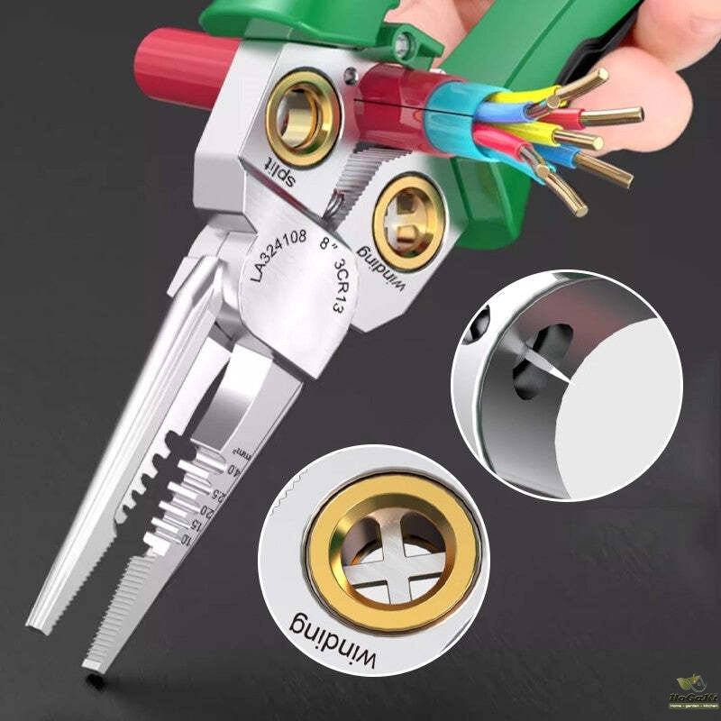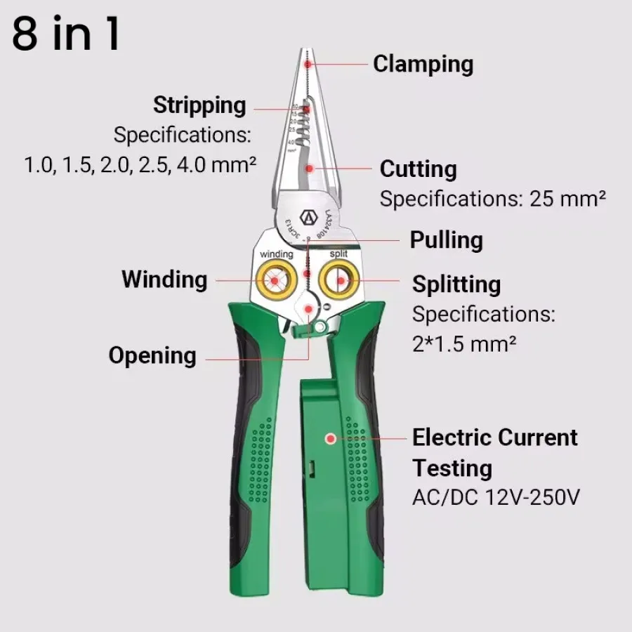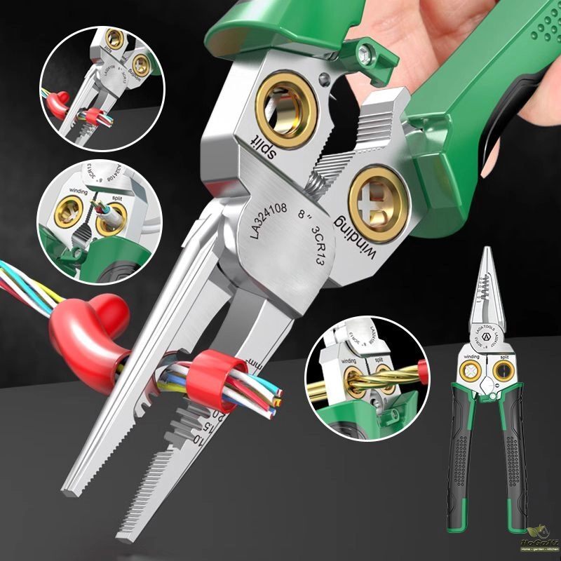 MULTI-TOOL FUNCTIONALITY: Includes wire stripping, winding, opening, clamping, cutting ,splitting capabilities. Compact design integrates multiple functions for convenience.