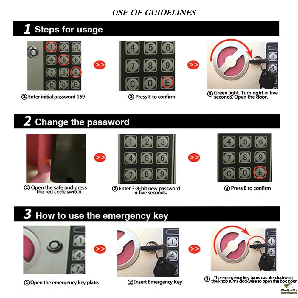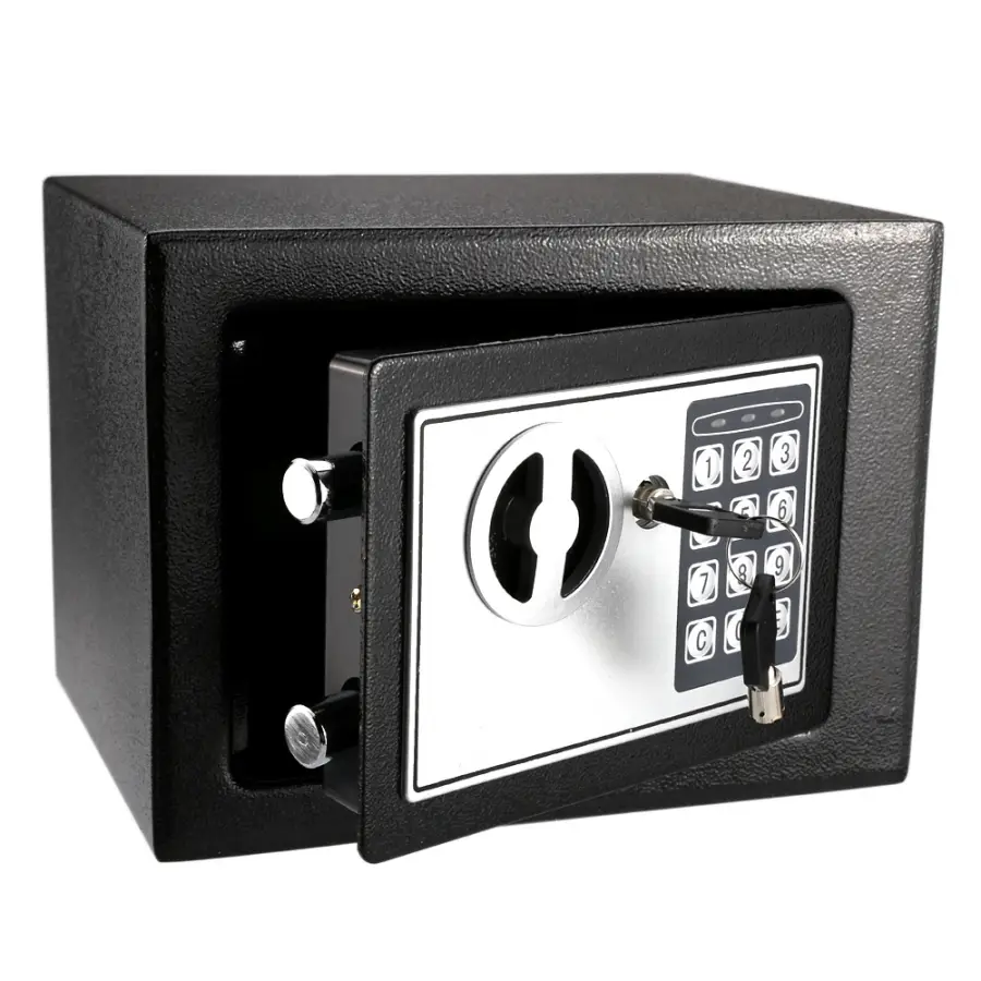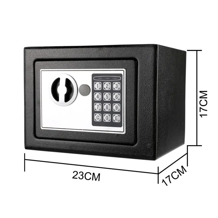 Equipped with electronic lock and rotary knob and 3-8 digits password are supported. 2 emergency override keys makes it possible to open the safe in some exceptional cases.