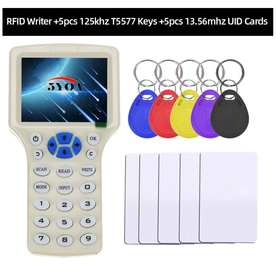 5YOA Handheld 125KHz EM4100 TK4100 RFID Copier Writer Duplicator Programmer Reader EM4305 T5577 Rewritable ID Keyfobs Tags