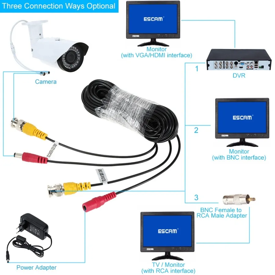 - Use with Closed Circuit Television (CCTV) applications and security camera components. - This pre-terminated CCTV cable is perfect for transmitting video and power. - Simplify the installation of surveillance systems by using one cable to carry video and power. - Extend the cable on your new camera easily with this extension kit. - Don't waste time soldering or crimping together your own cables. - Most cameras we carry only have a few feet of cable coming off the camera. - For camera with DC power only. Specifications: - Color: black