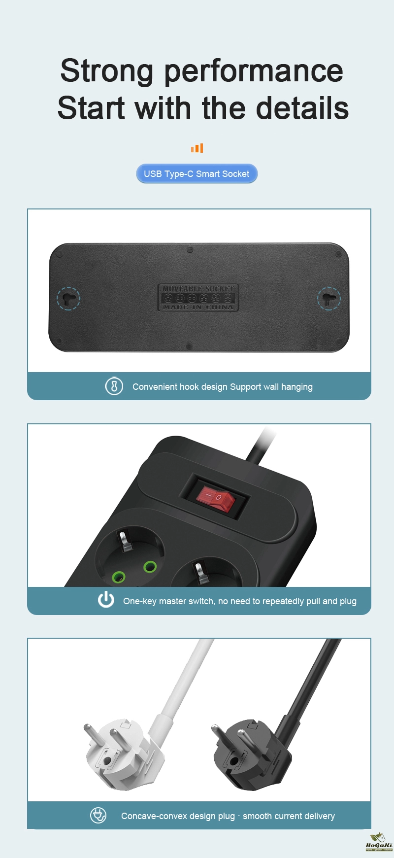Easier to use by hanging the socket on the wall, More space saving;