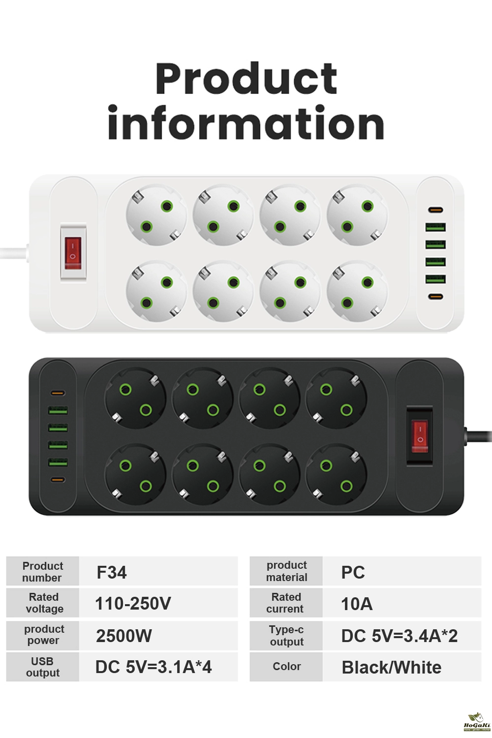 Ports: 6、8、10 sockets with 4 USB Ports+ 2 Type-C