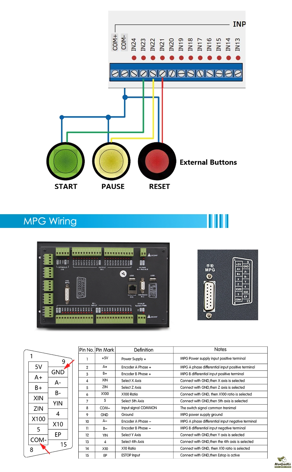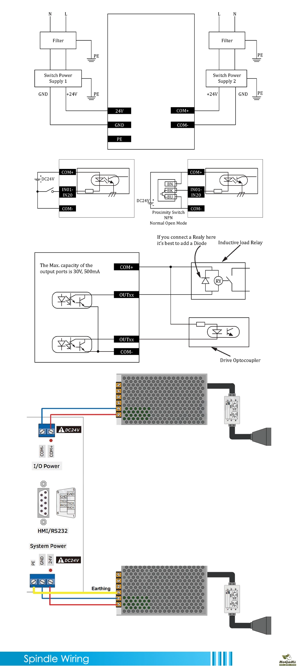 1) All the input signal COMMON termimal is COM-, not GND; Never short connect GND and COM-;