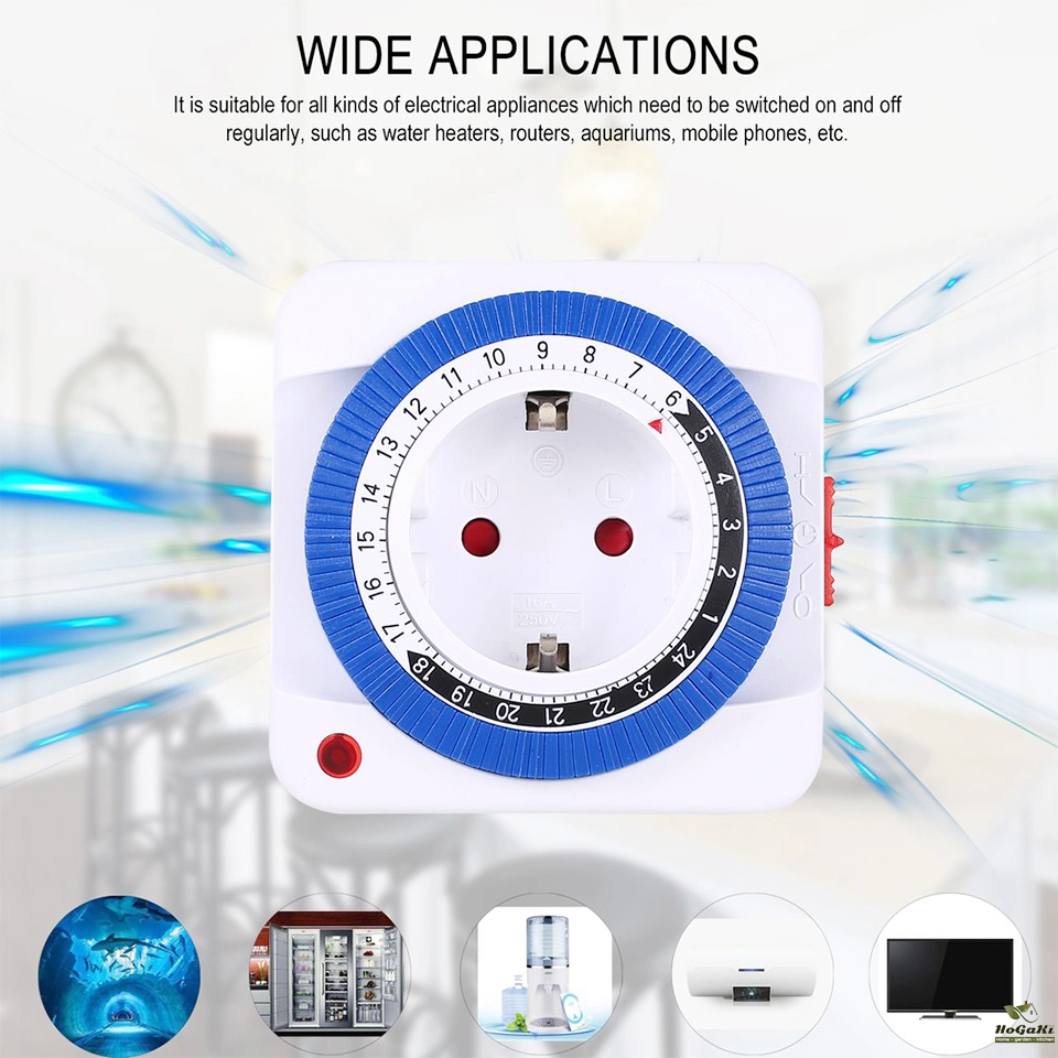 EU/US Plug 24 Hours Timer Switch Timer Mechanical Grounded Programmable Smart Countdown loop Switch Socket Indoor Auto Power off