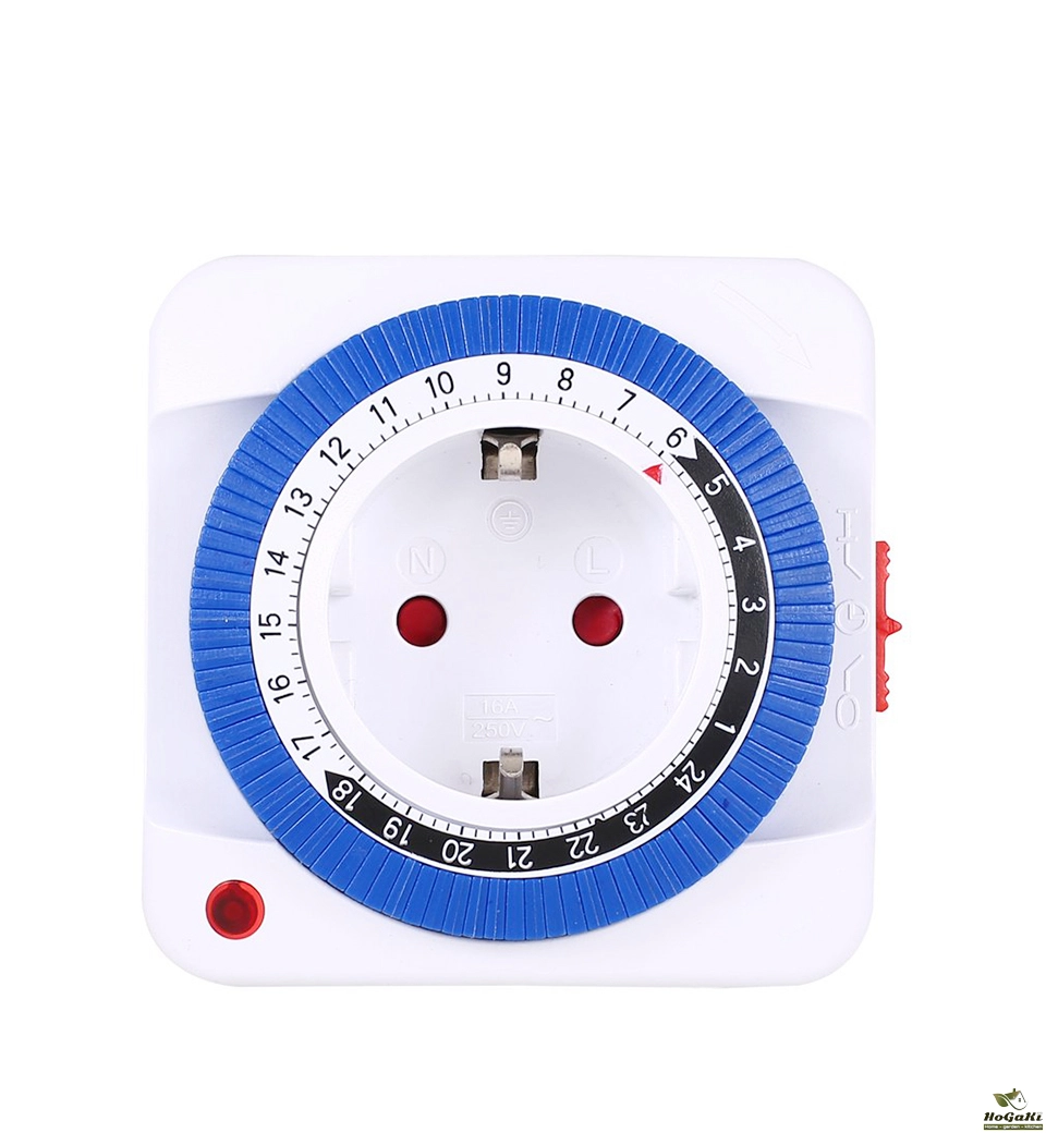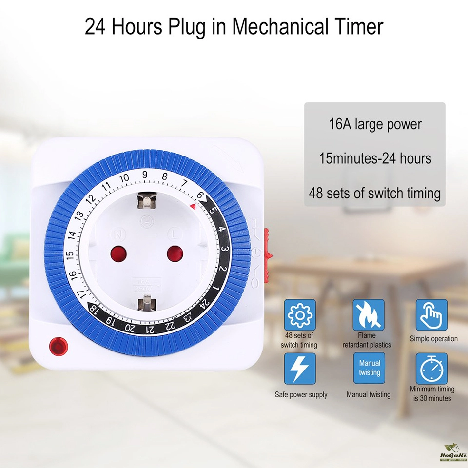 1.This is a 24 hours plug in mechanical grounded programmable timer switch,with 16A large power.