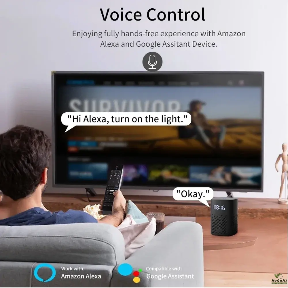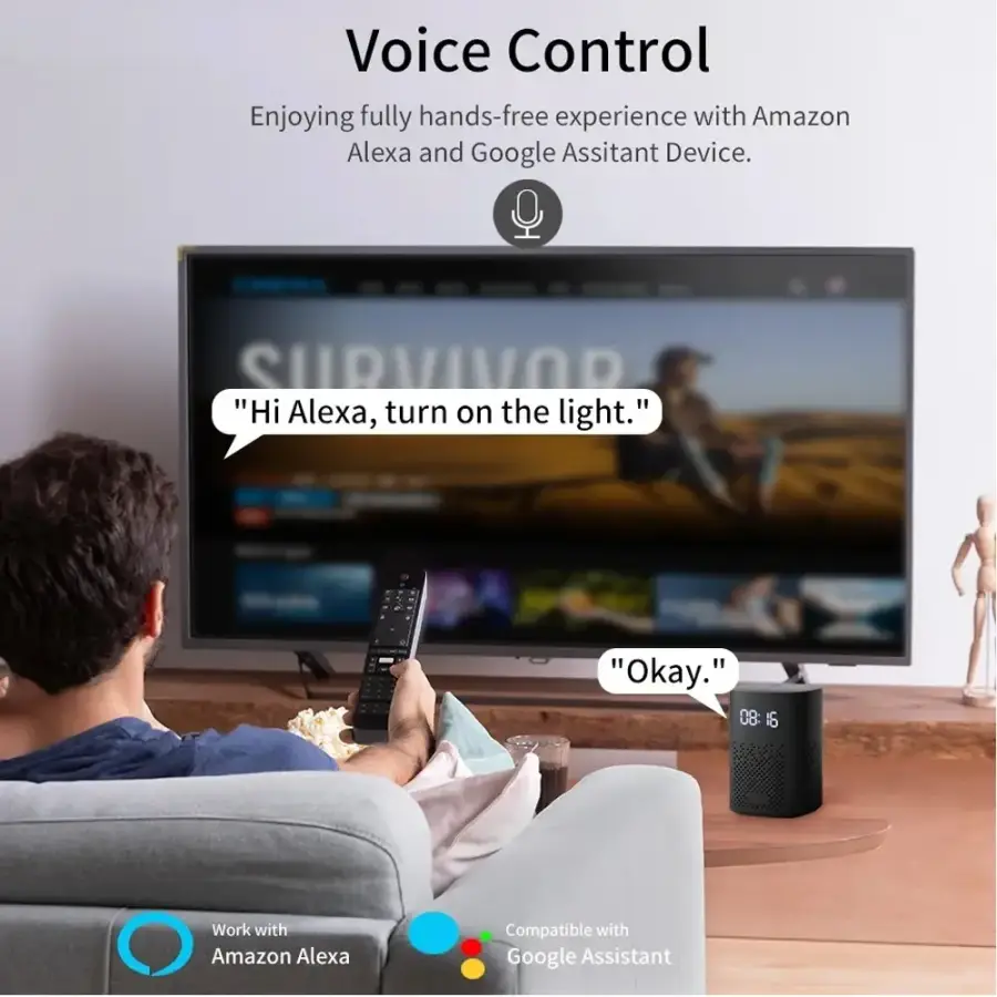 Compatible with Alexa and Google Assistant, you can use the voice control to turn on/off the connectted home appliances .