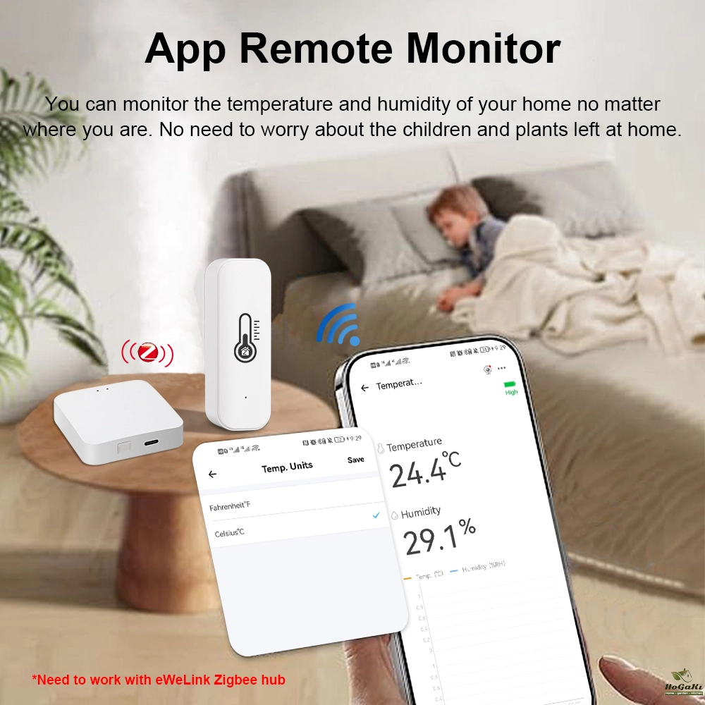 Zigbee 3.0 Temperature and Humidity Sensor Indoor Humidity Sensor eWelink APP Monitoring Need Zigbee 3.0 Gateway Hub to Work With