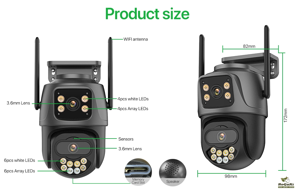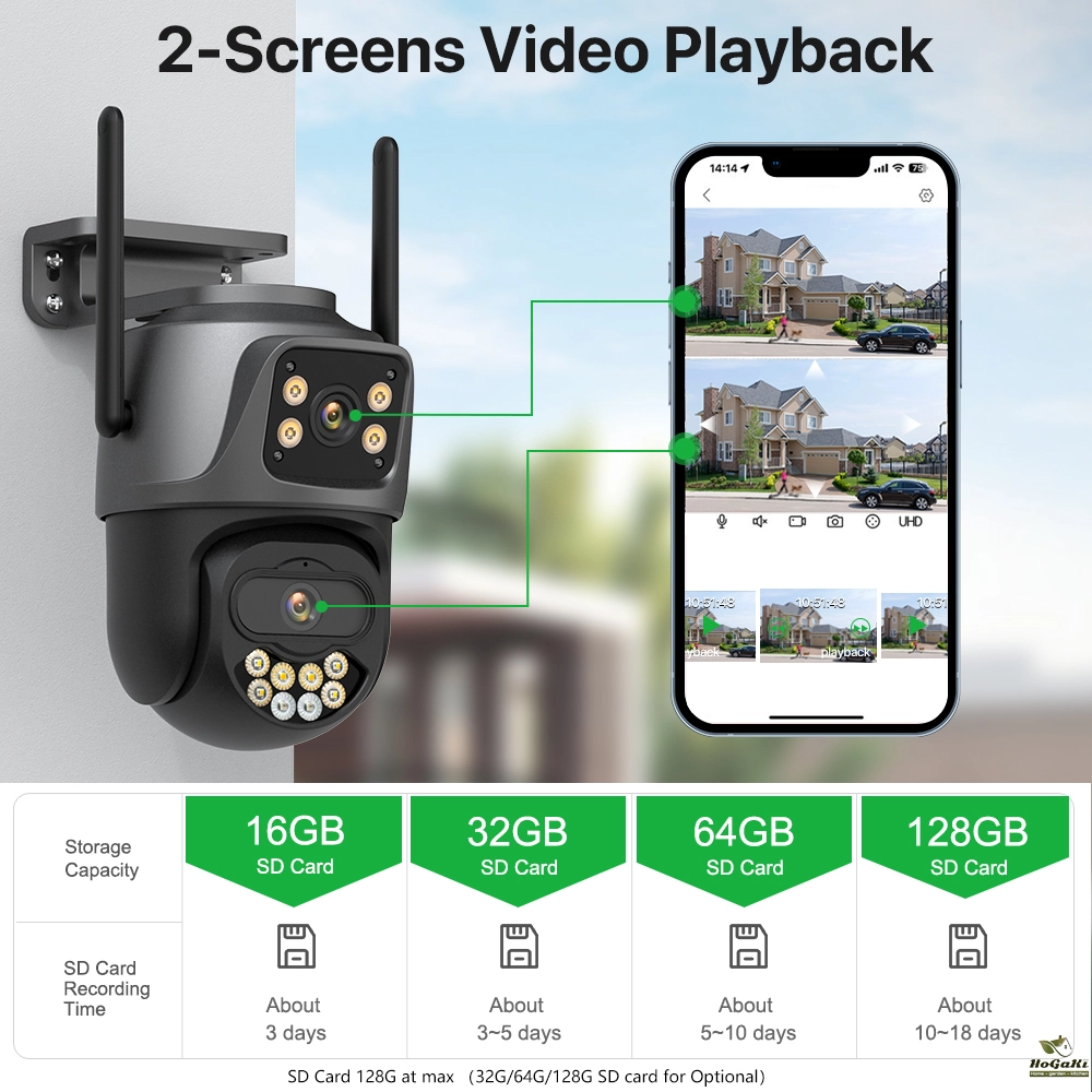 - Dual-lens dual-sensor dual-screen, wide-angle Viewing + Long Distance Viewing to achieve clear monitoring from far and near;
