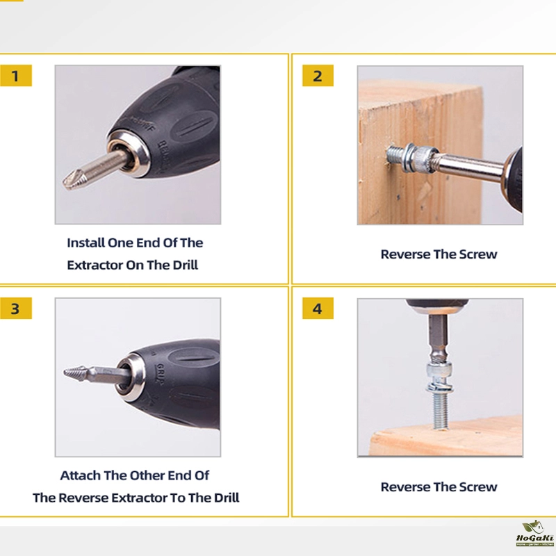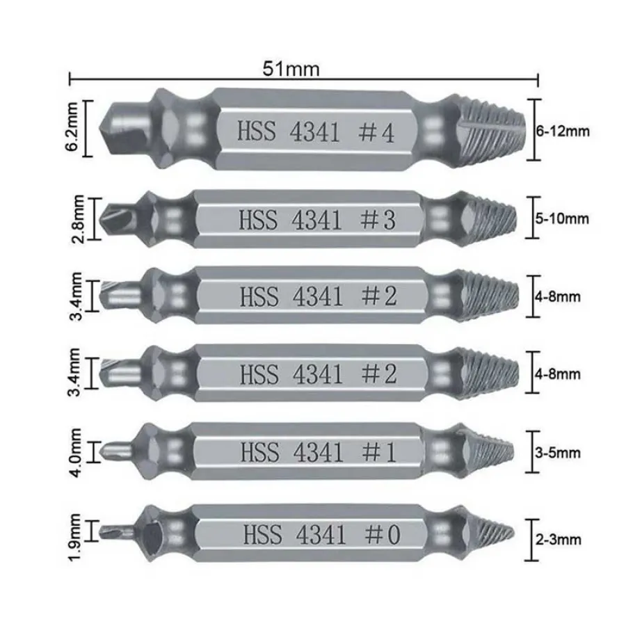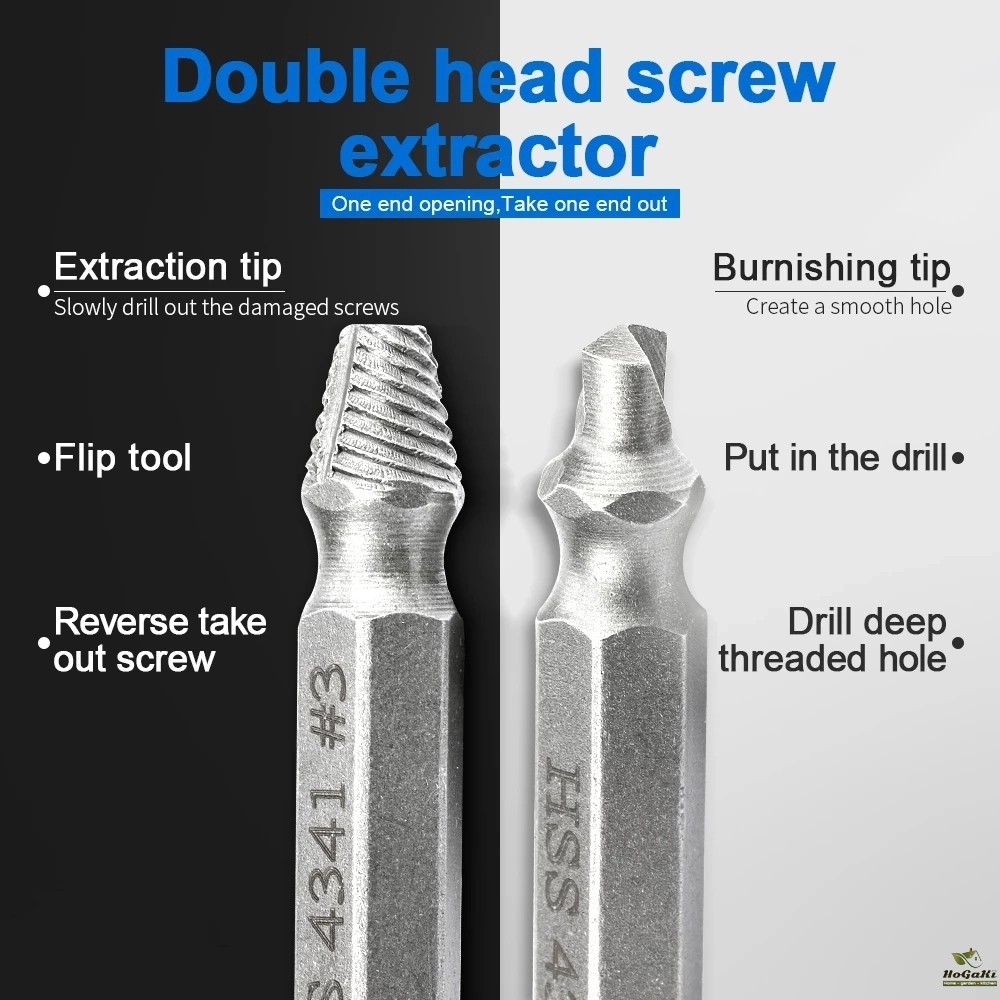 No need for drilling, one step removal. Fine teeth with long threads, good bite toughness, and high torque