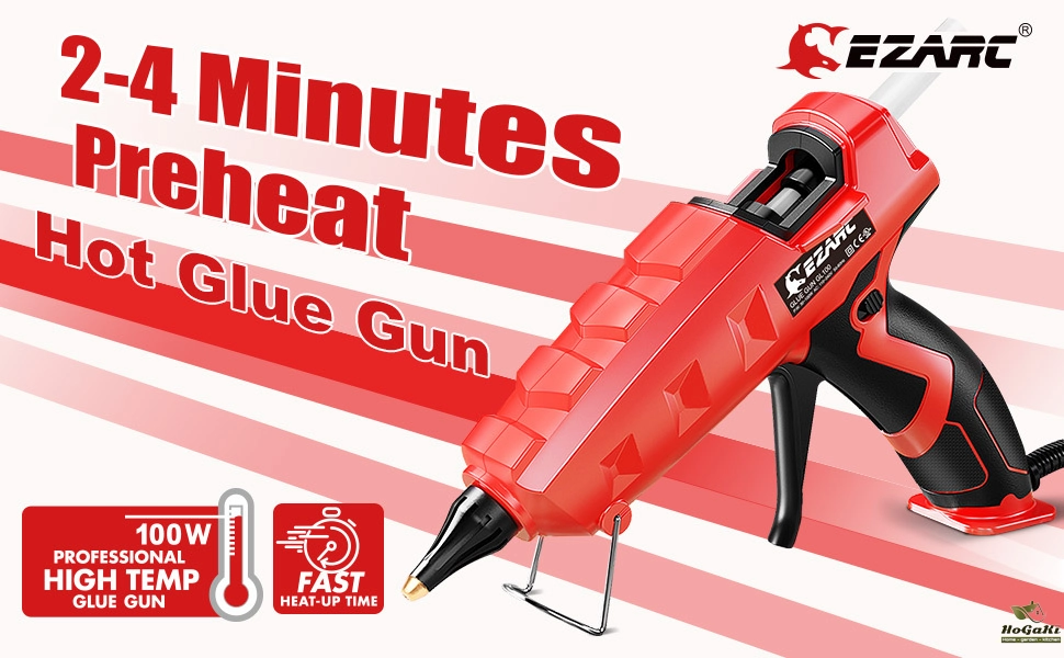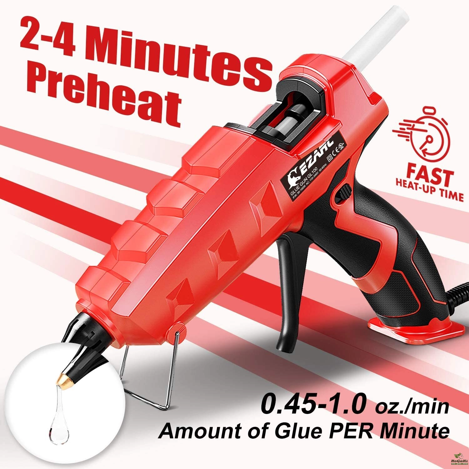 【Fast Preheating Time】EZARC hot melt glue gun features a class leading 100 Watt PTC heating system with an operating temperature of 356°F/180°C that heats up just 2~3 minutes. UL Certified to ensure safety.