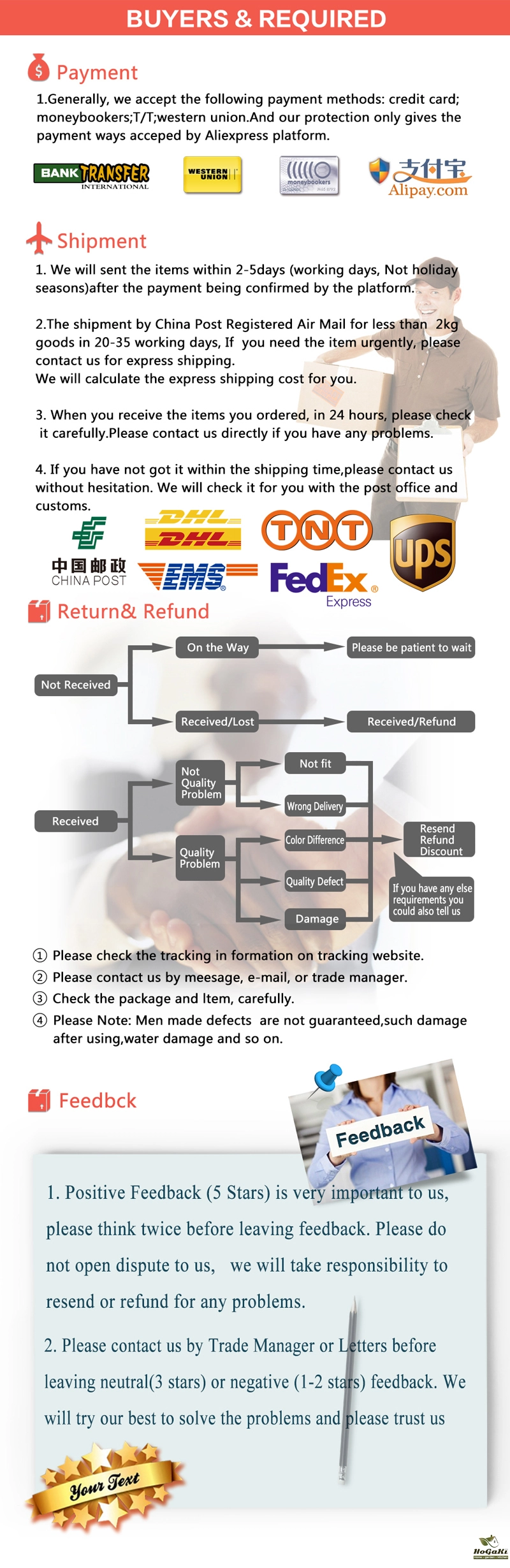 Packages from our warehouse in China will be shipped by ePacket or EMS depending on the weight and size of the product. Packages shipped from our US warehouse are shipped through USPS.
