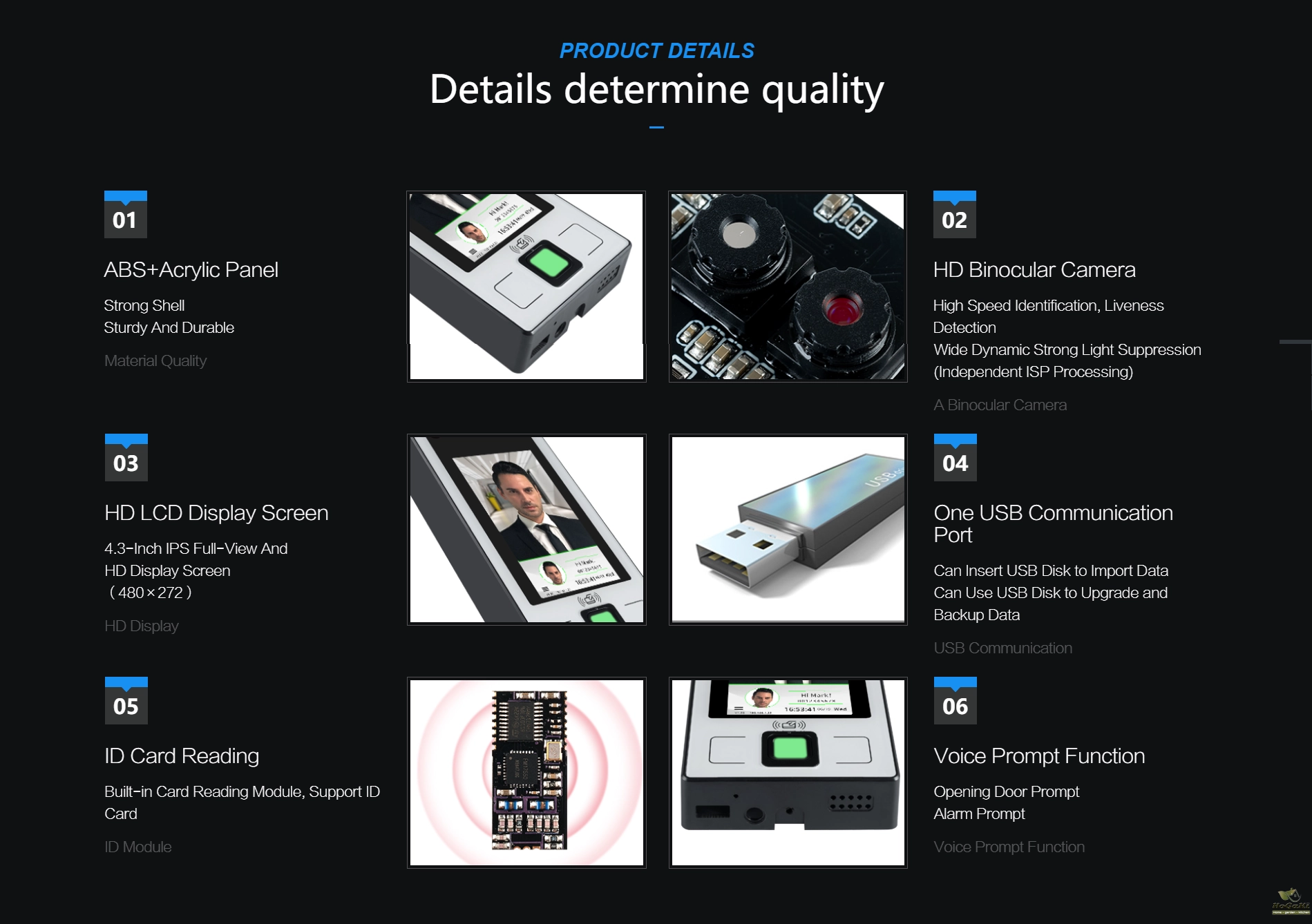 User Capacity: 2K Fingerprints, 2K Faces, 2K Cards and 2K Password