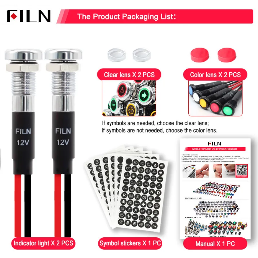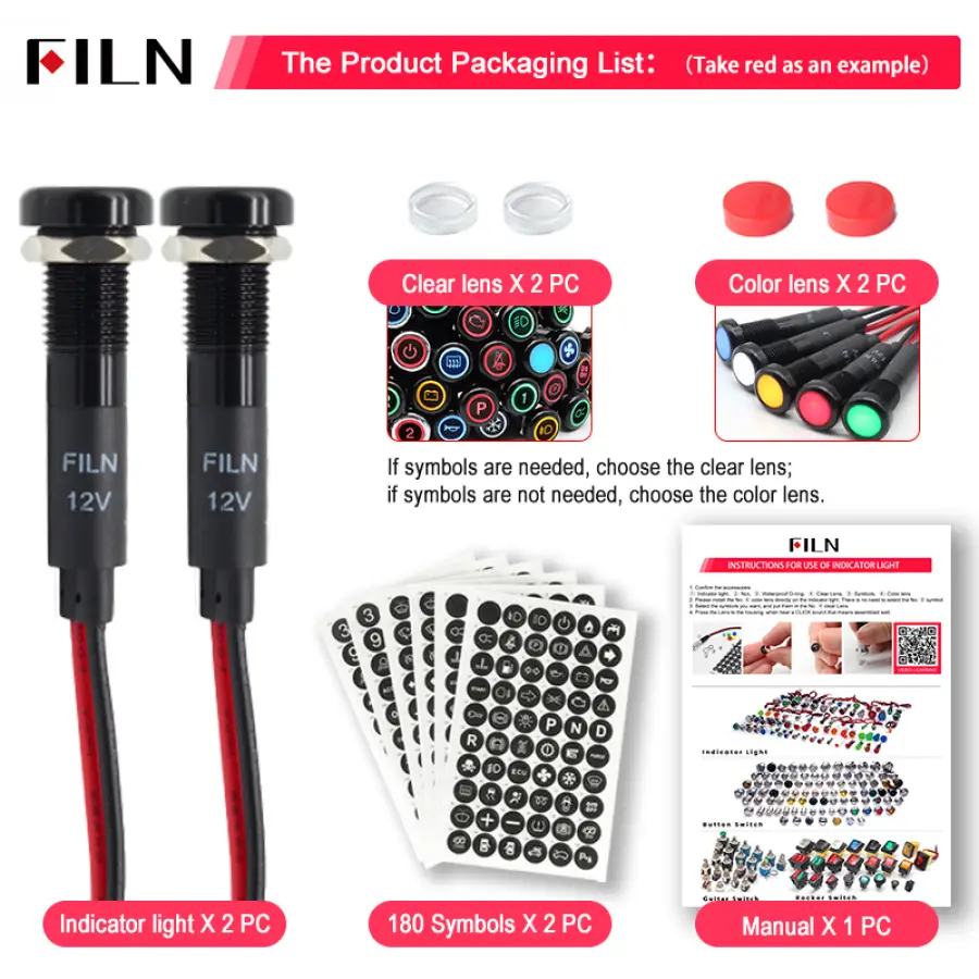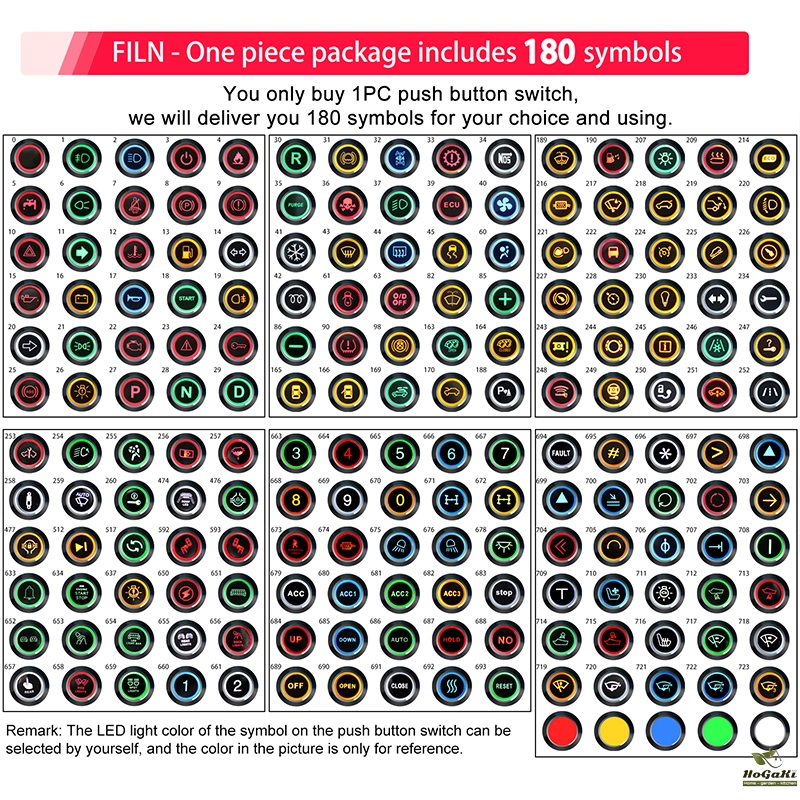 [Various symbols] 8mm indicator LIght are 180 kinds of Symbols, you can use all the symbols only with the indicator light that can match the model, and there are instructions inside.