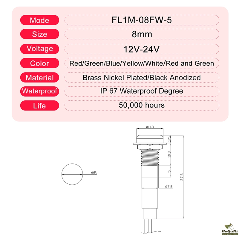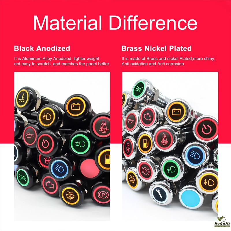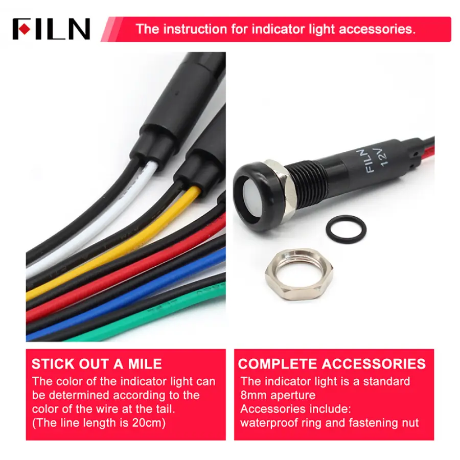 [Voltage size of the symbol indicator] Indicator Light Size of the 12v Indicator Light is 8MM, and the Shell Material is Metal.