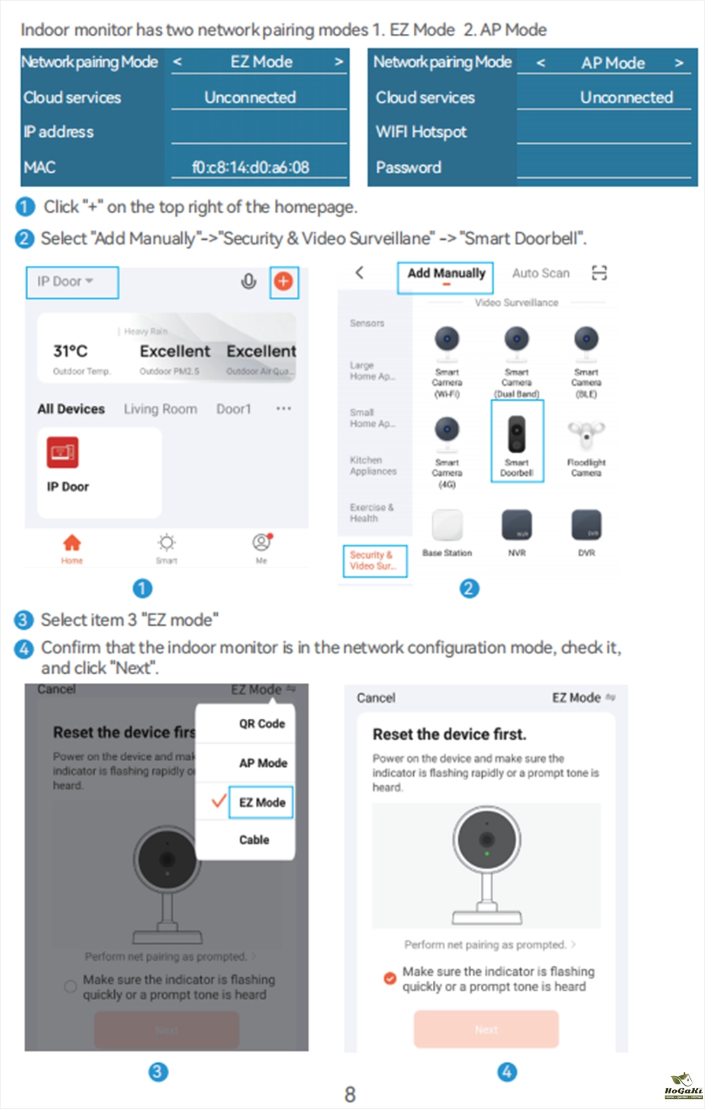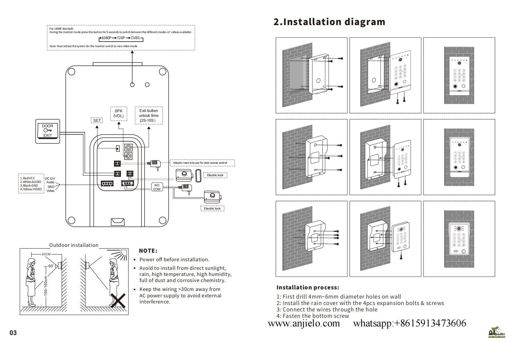 Note: 4 wires cable connection doorbell and monitor, The monitor support WIFI network, but the indoor monitor and doorbell is Wired.