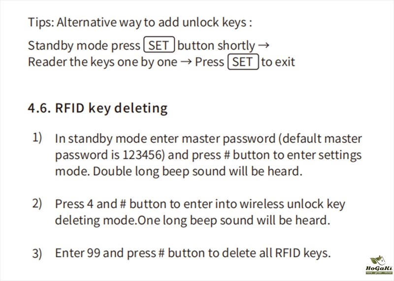 Step 1. Press SET button, please put the IC card on the recognition module, a long BEEP means successful, please add another IC card.