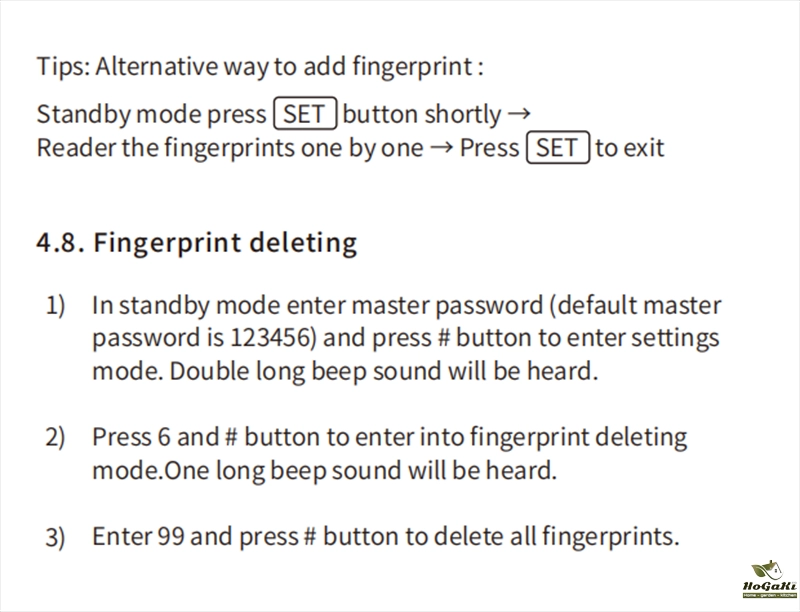Step 2. Press SET button when you complete the fingerprint addition.