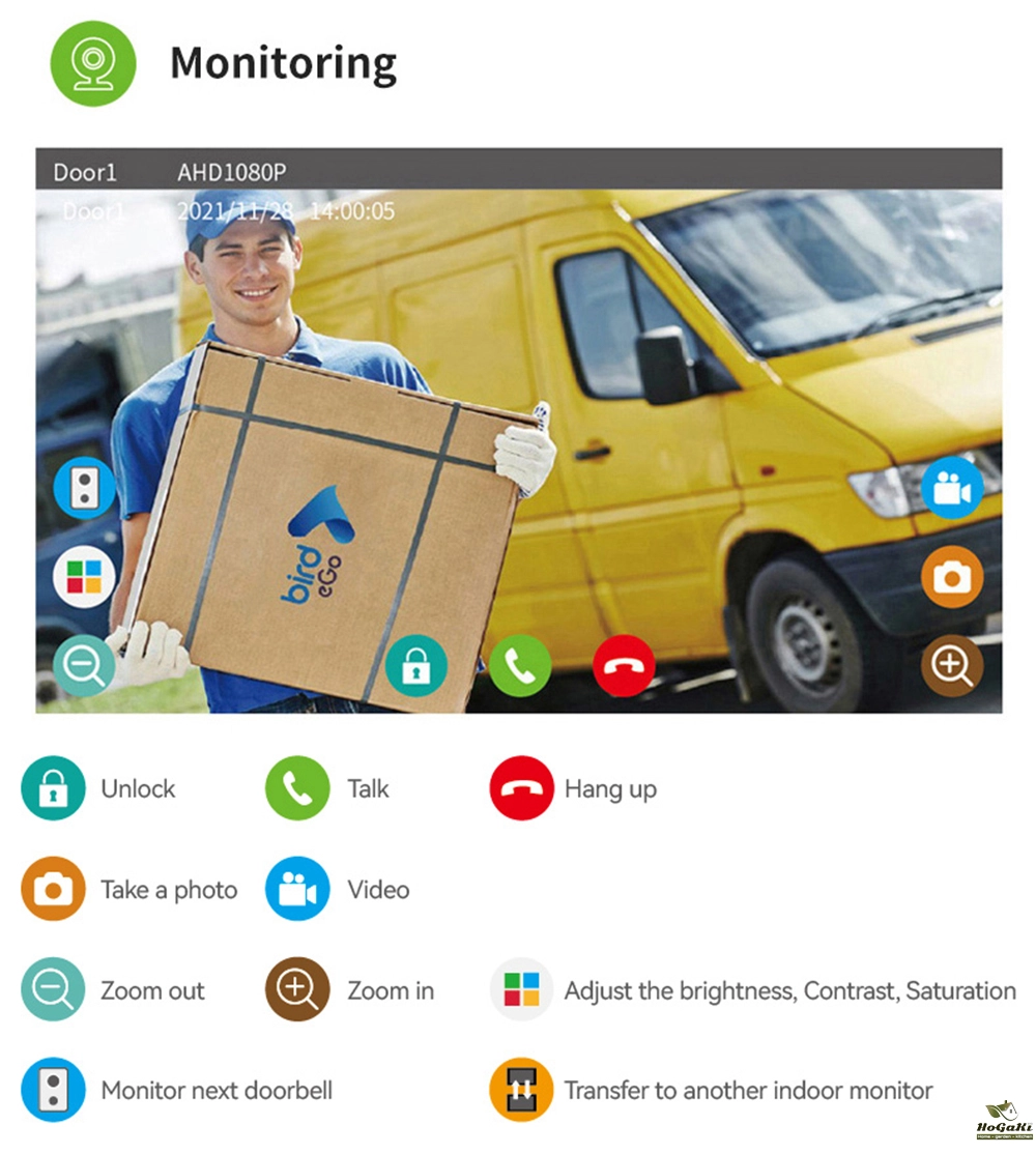 Camera built-in microphone and speaker, When visitors press the doorbell or motion detect is triggered, doorbell camera will Automatically record videos or snapshot pictures and save them in monitor micro SD card.