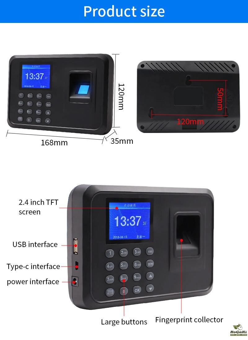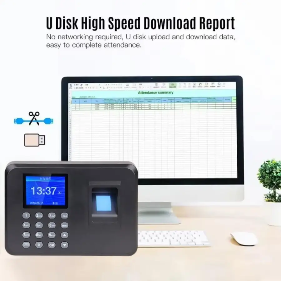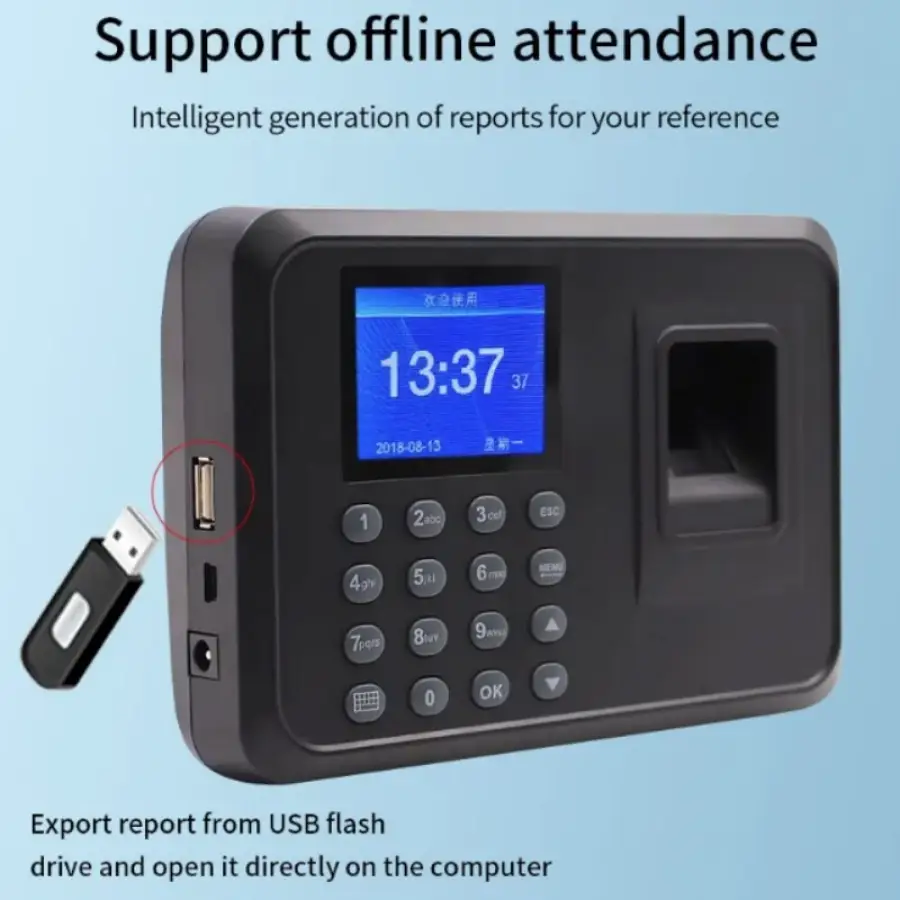 Fingerprint Attendance System Biometric Clock in Machine Employee Keypad Electric Time Clock Recorder USB Data Management Device
