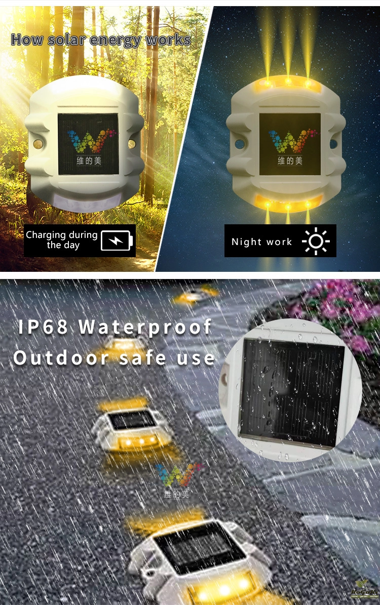 Dual sides yellow flashing or steady LED solar road stud 3M reflector warning road signs construction