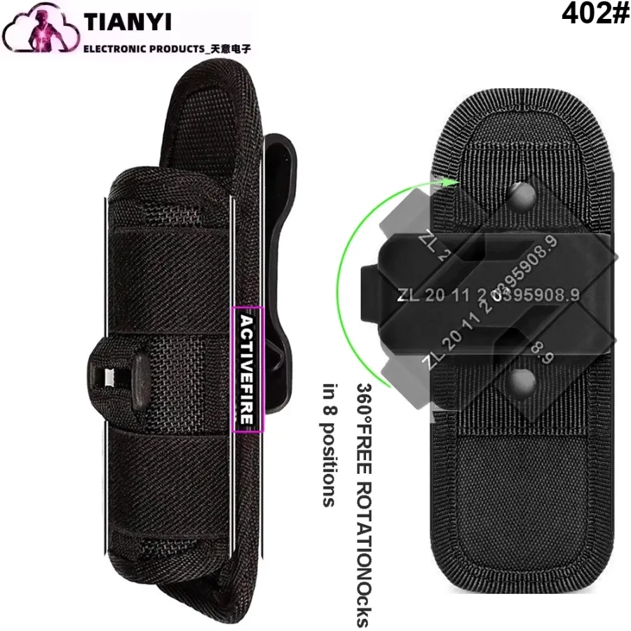 Bolsa de coldre de cinto para lanterna tática Suporte de nylon ajustável com clipe giratório de 360 graus